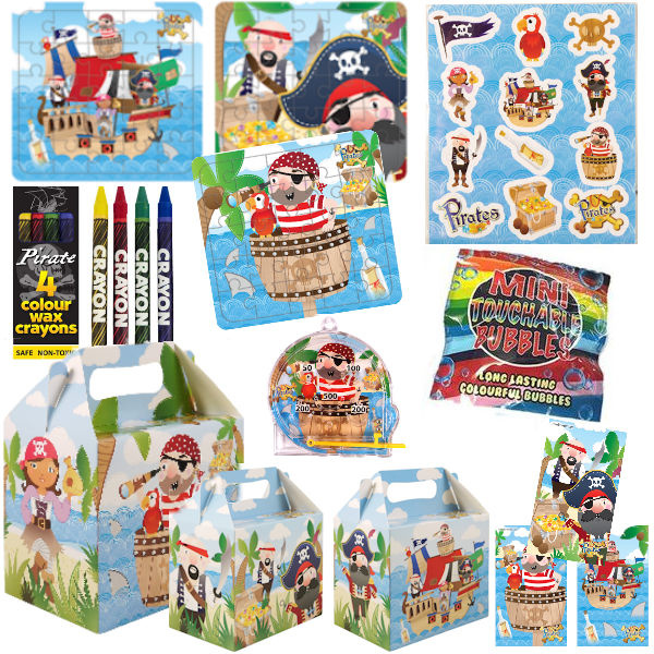 Deze ✅ KANT-EN KLARE ✅ Piraten Uitdeelbox, / Traktatiebox met daarin 6 Speelgoed artikelen!.