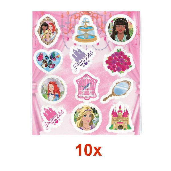 ▶ 10x Prinsessen Stickervellen, met elk 12 Stickers.