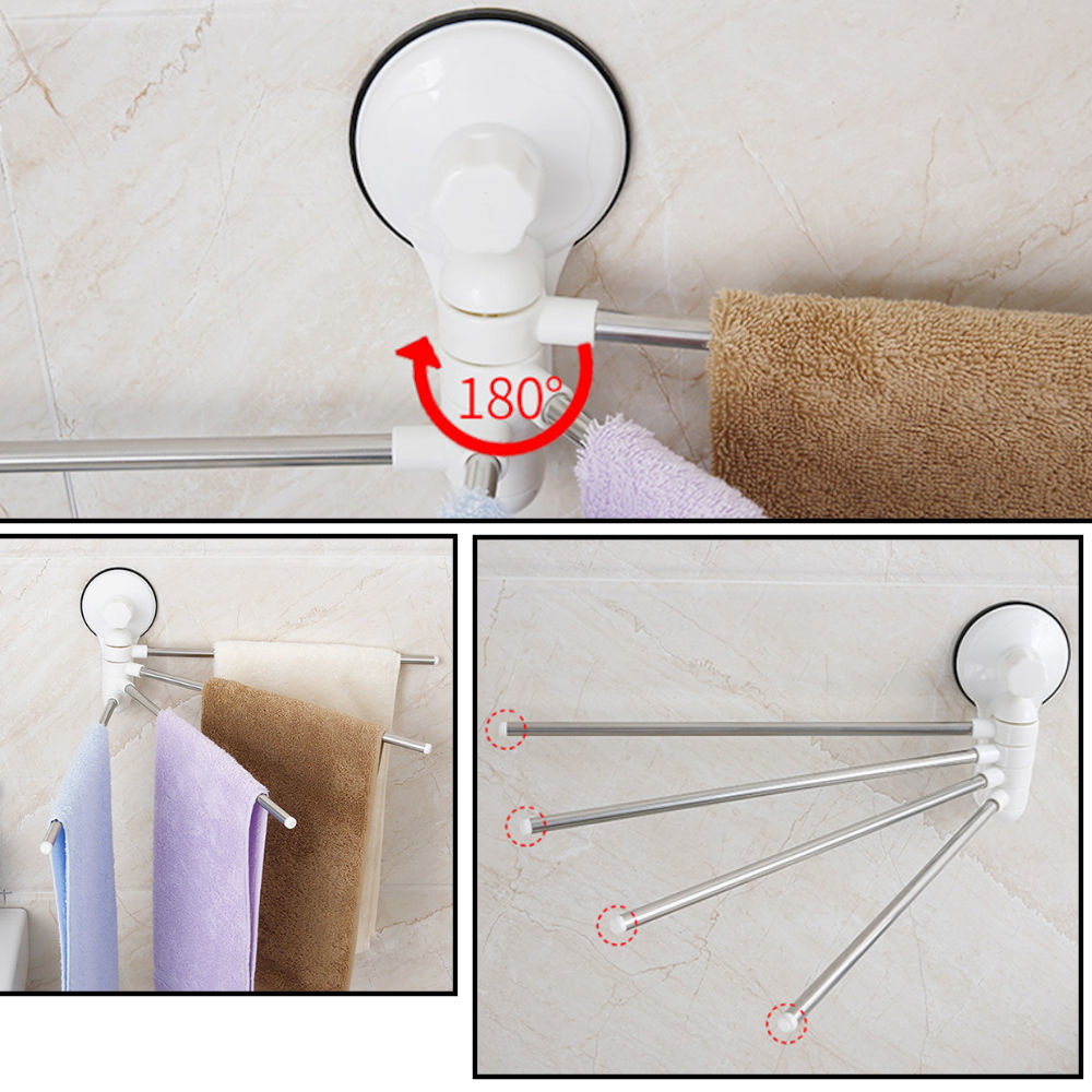 Deze draaibare handdoekenhouder voor wand montage heeft een mooi strak design. Is voorzien van 4 ophang stangen die elk 180 graden draaibaar zijn.