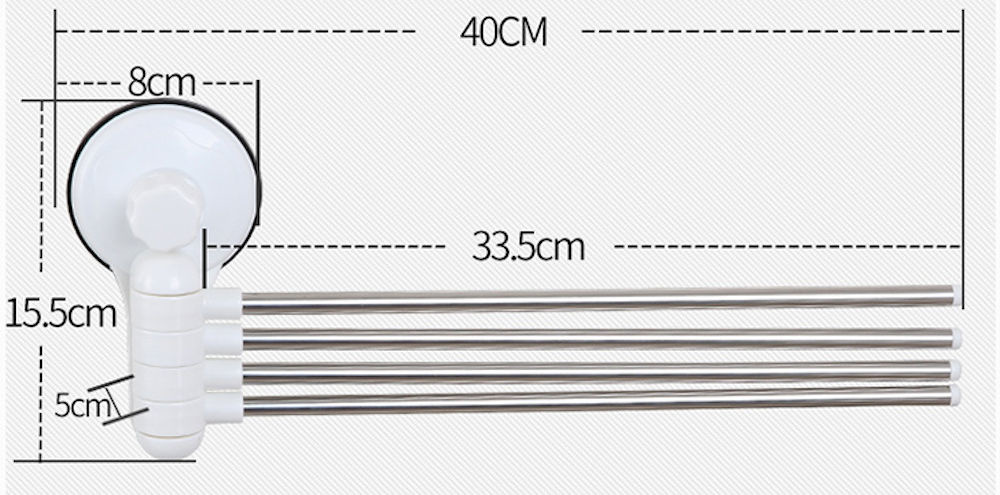 Deze handdoekenstang met 4 stangen voor handdoeken wordt geleverd inclusief sterke zuignap voor bevestiging aan uw muur. Zodat u niet hoeft te boren in de muur of andere schade hoeft te maken in uw muur. Deze zuignap is speciaal ontwikkeld voor vochtige ruimtes. Deze zuignap kunnen zowel op een gladde ondergrond van: glas, tegels, metaal of marmer worden aangebracht en laten geen sporen achter na verwijdering.