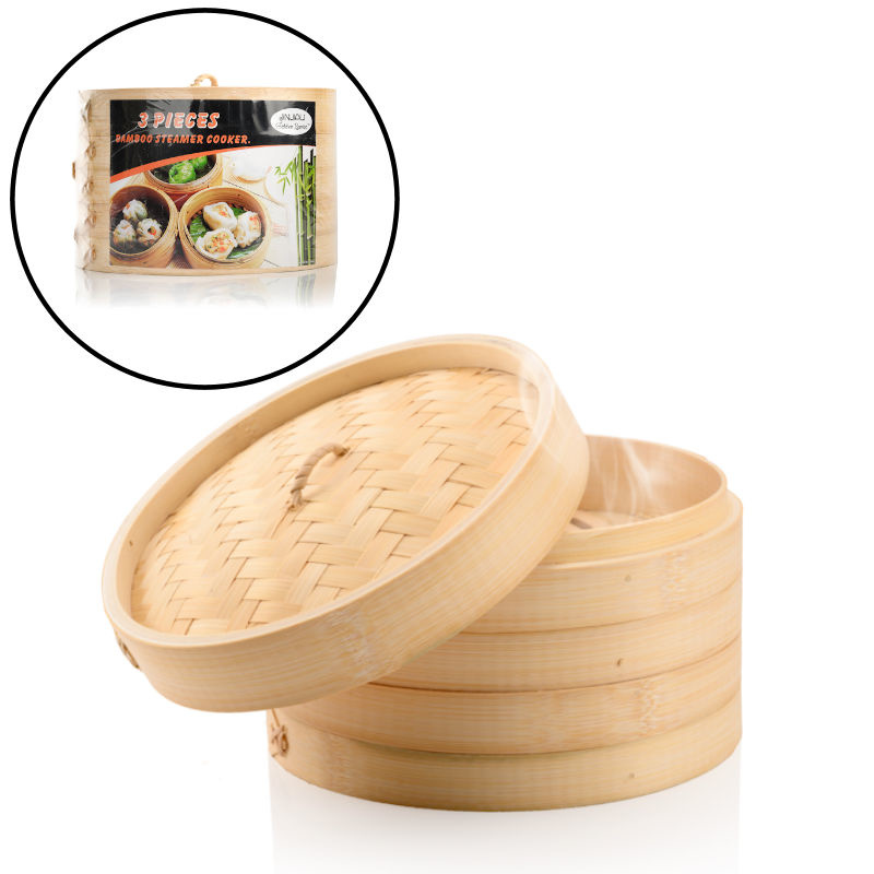 ✅ 3-Delige Stoommand van Bamboe Diameter Ø 20.5 Cm. Met deze klassieke bamboe stoommand bereid je op een traditionele manier rijst voor Aziatische gerechten.