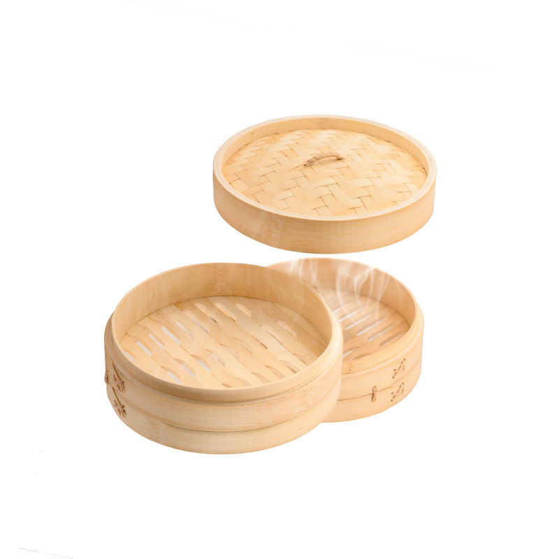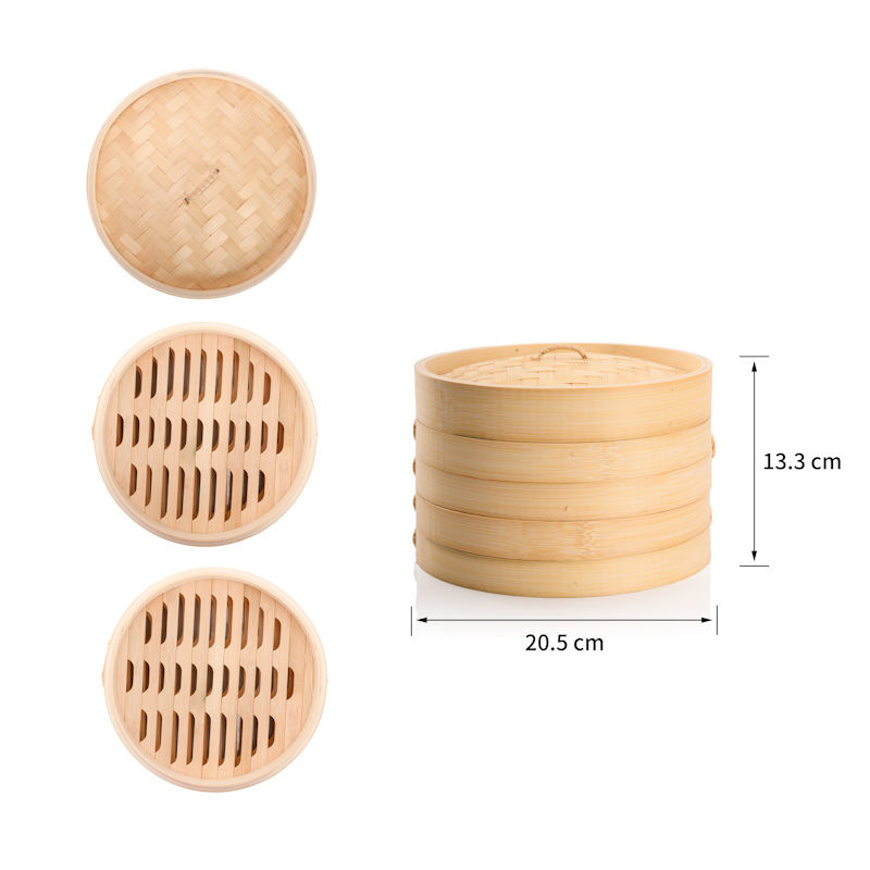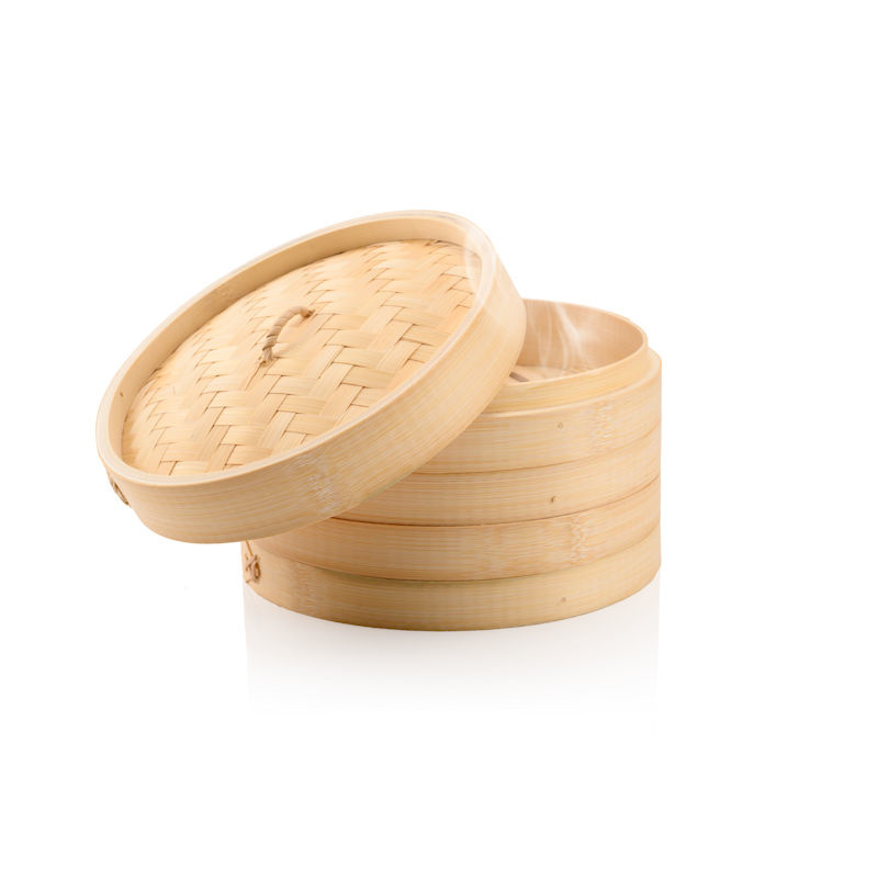 ✅ Rond Bamboe stoommandje, voorzien van 2 stoommandjes + deksel.