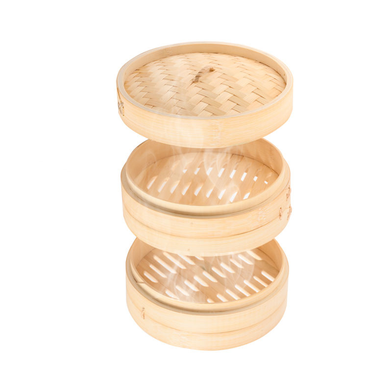 Decopatent 3 Delig Stoommandje met deksel - Ø20.5 Cm - Bamboe - Rijst Stoommanden - Stomer Steamer Cooker - Dim Sum Stoomschaal