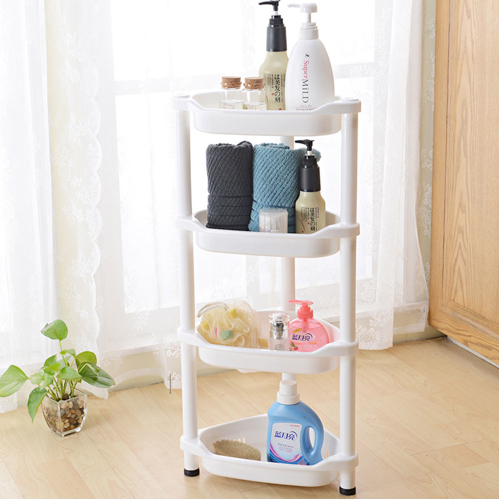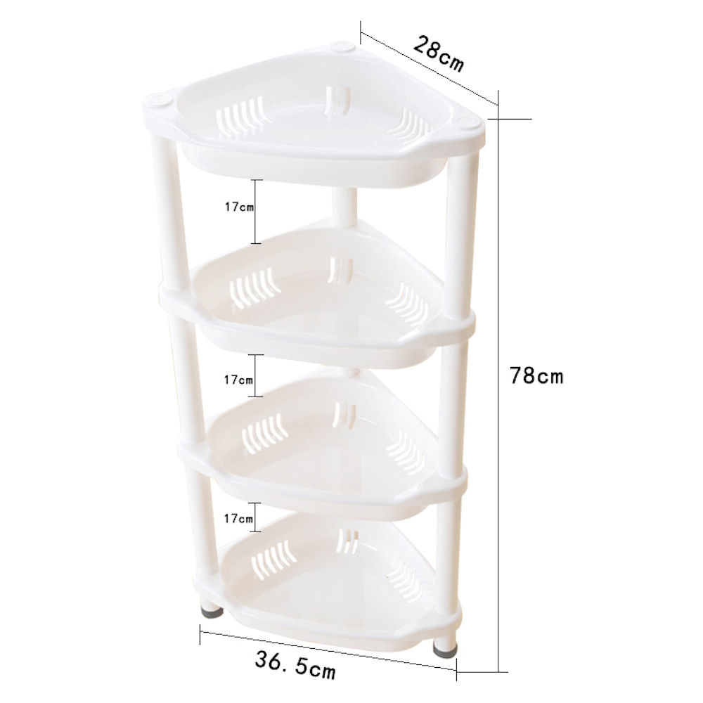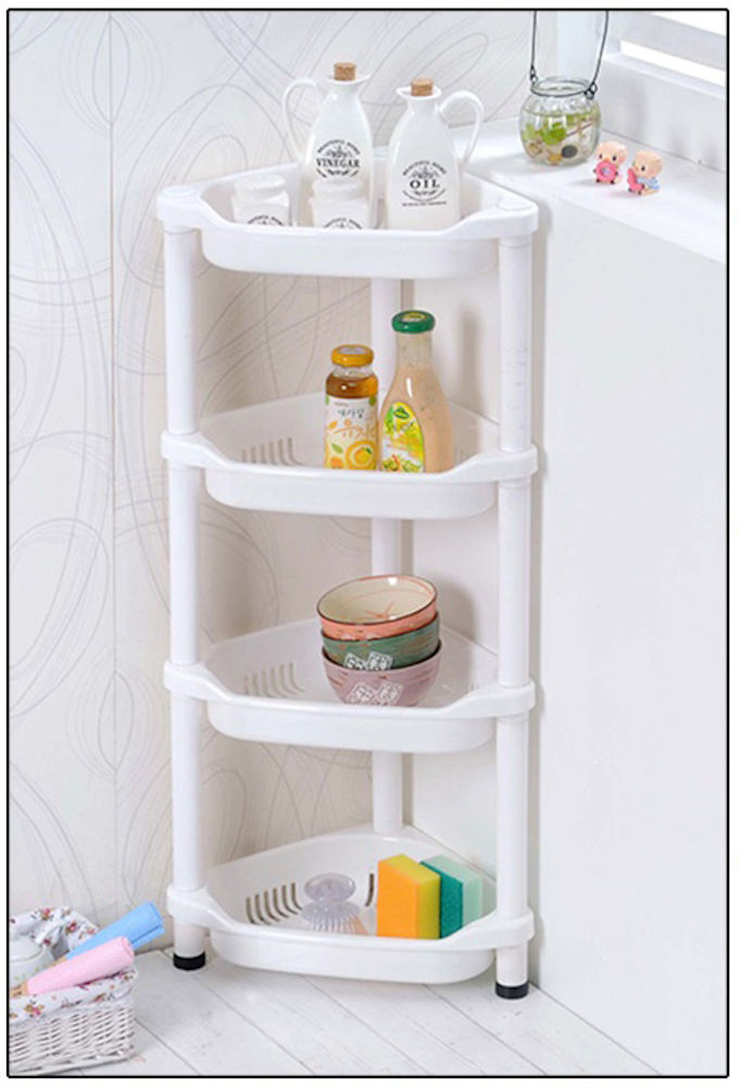 Dit handige opbergrek voor plaatsing in de hoek is voorzien van 4 lagen is gemaakt kunstof. En is speciaal gemaakt voor gebruik in de badkamer of uw keuken.