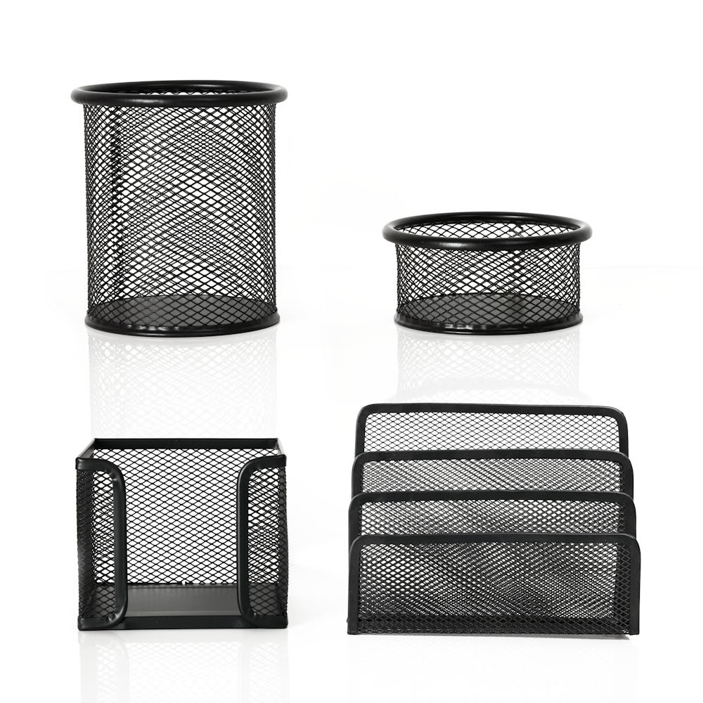 Deze bureau organizer set is volledig van mesh metaal gemaakt. Het strakke design maakt deze bureau organizer set tot een echte blikvanger op jouw bureau of op kantoor.