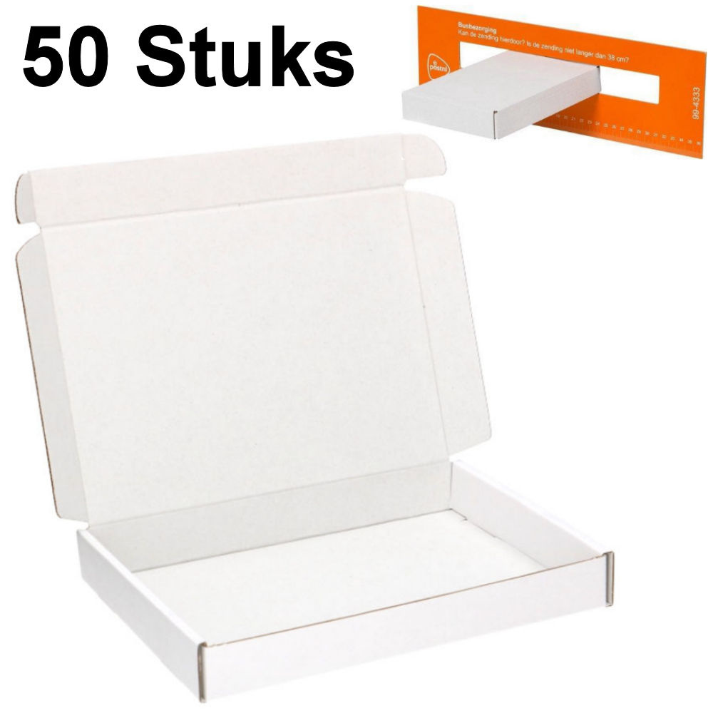Merkloos 50 Stuks Brievenbusdoos A5 - KLEUR: WIT - 220x155x28 mm - Verzenddoos met bovenklep - Witte Brievenbusdozen