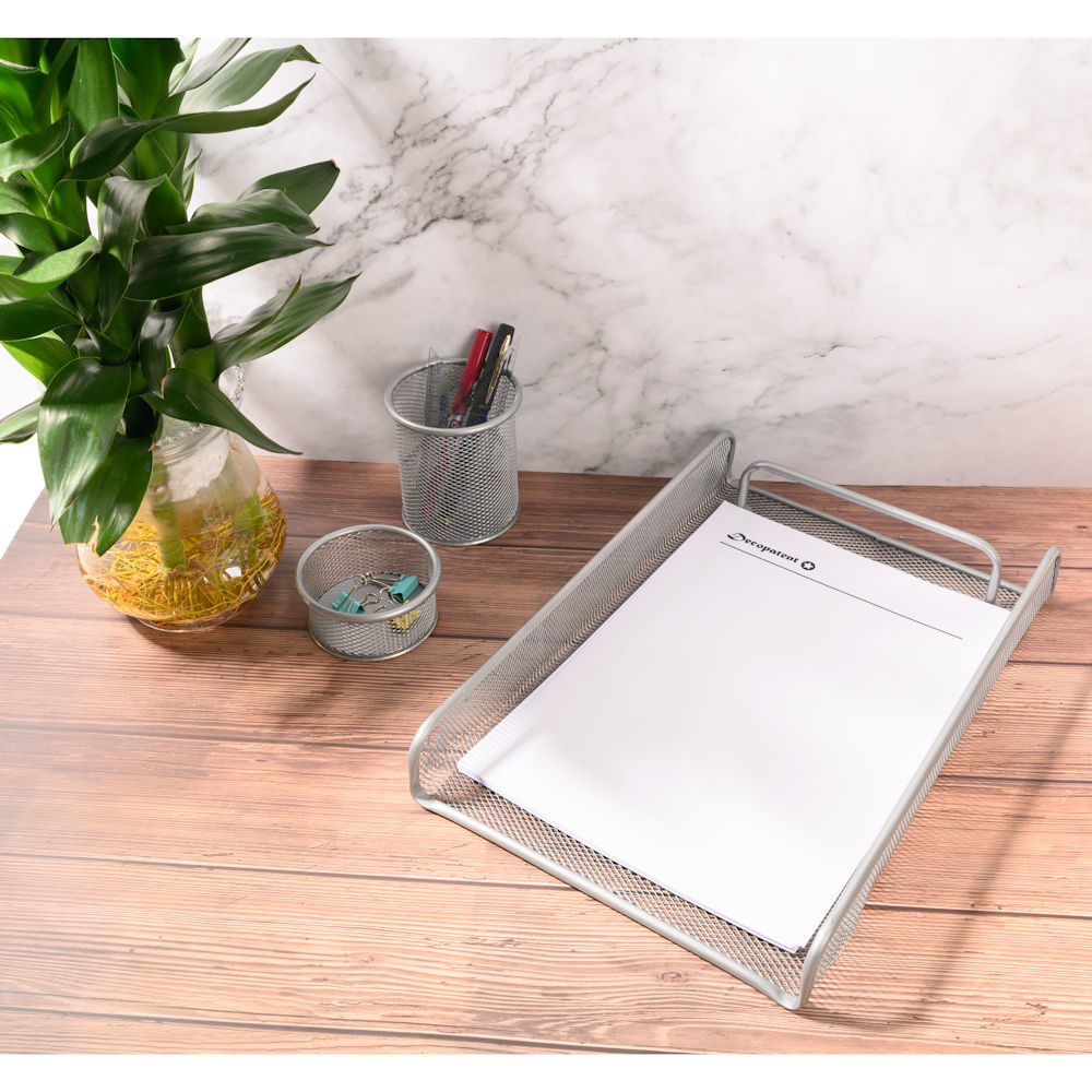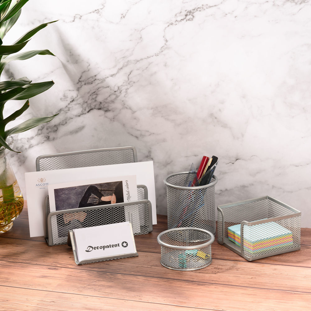Deze bureau organizer set is volledig van mesh metaal gemaakt. Het strakke design maakt deze bureau organizer set tot een echte blikvanger op jouw bureau of op kantoor.