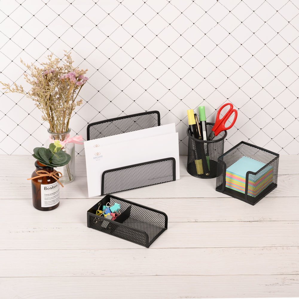 ✅ Bestaande uit: Pennenbak, Brievenhouder, Memobox, Paperclip houder.