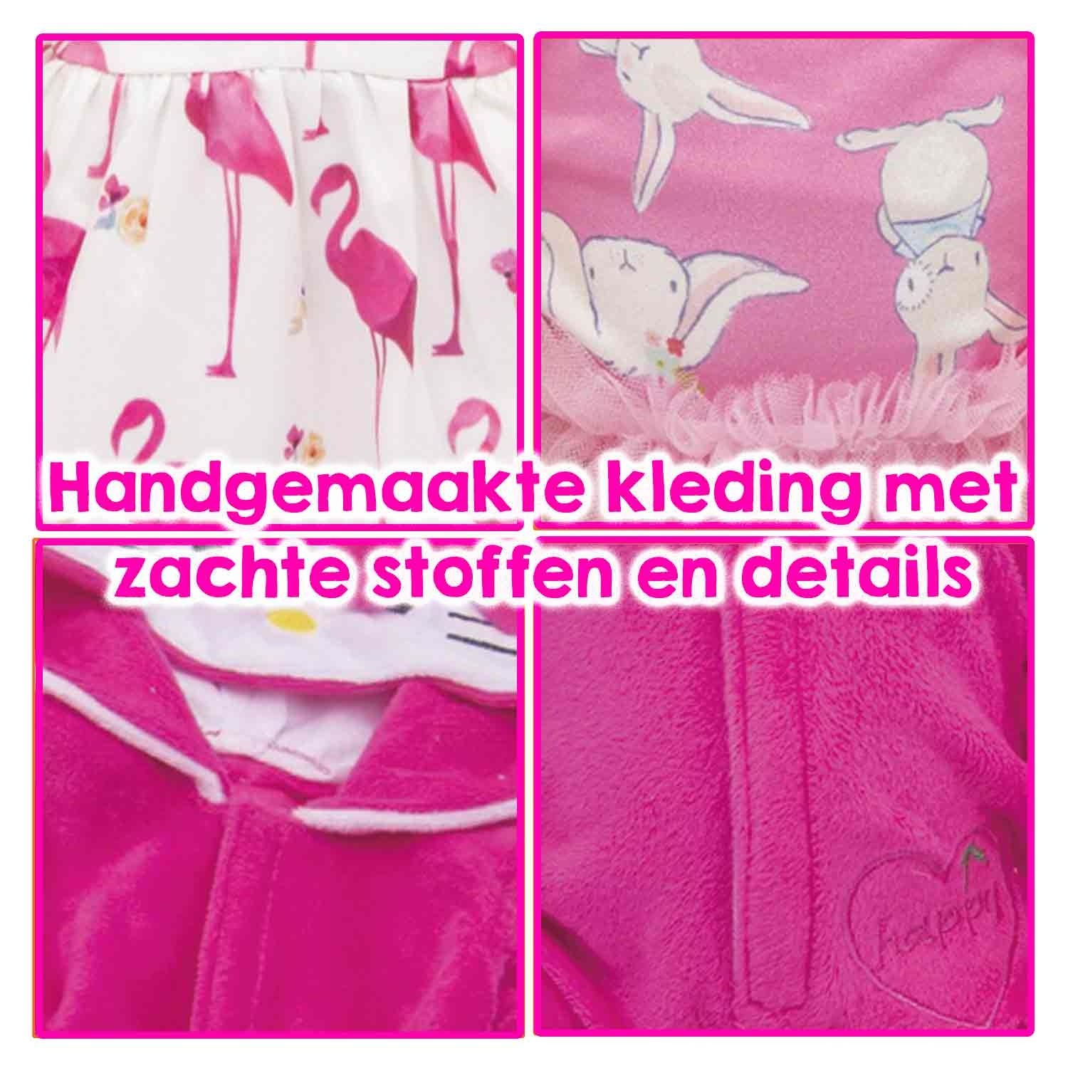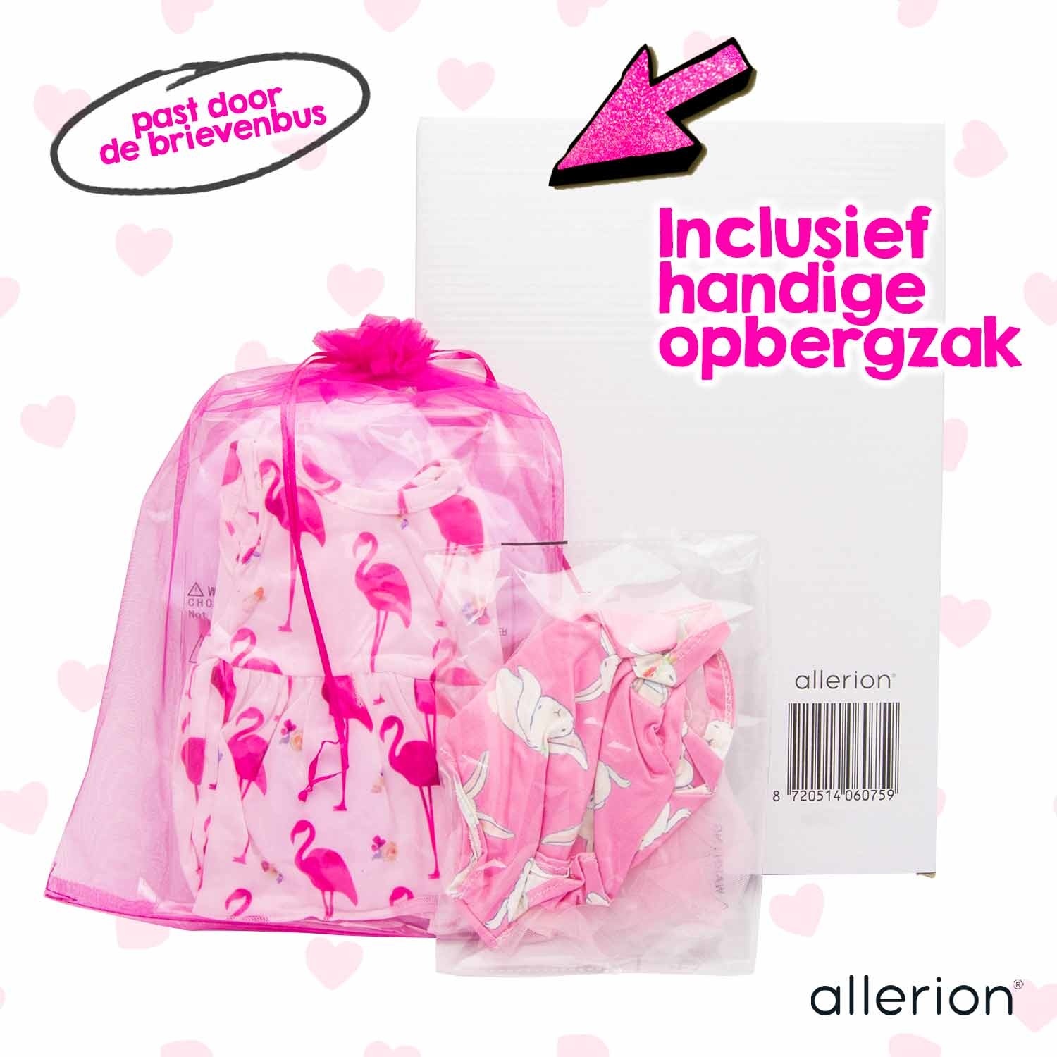De set wordt geleverd in handig roze opbergzakje. Zo kun je de outfits gemakkelijk bij elkaar houden, of meenemen!