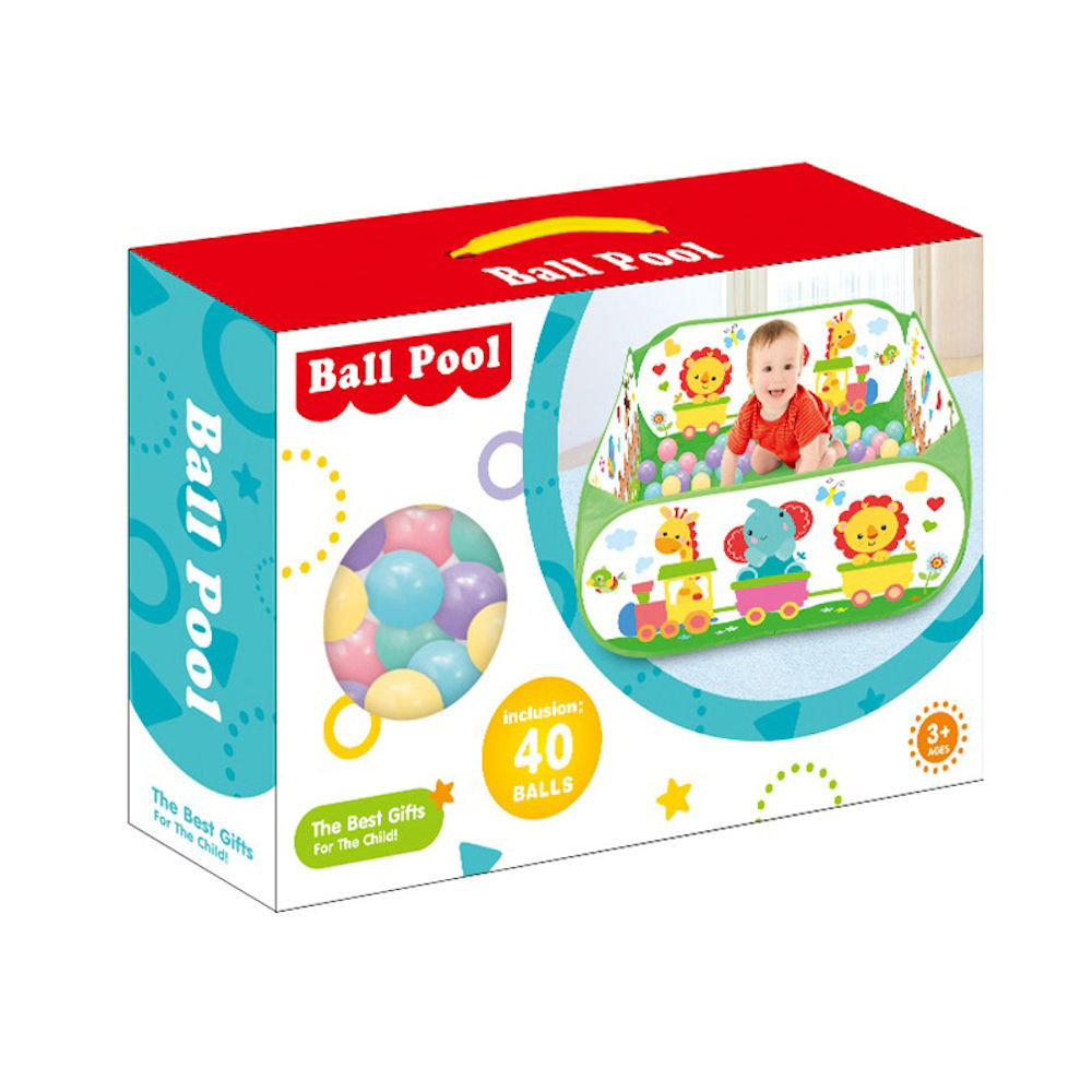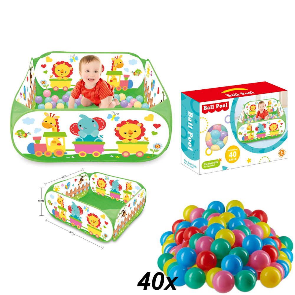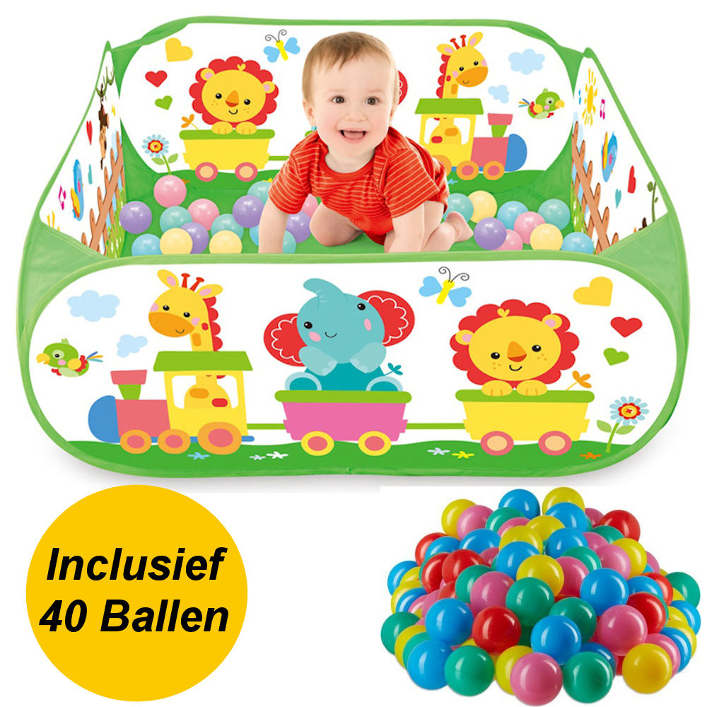 ✅ Ballenbak Inclusief 40 Ballen met Vrolijke Dieren trein print.