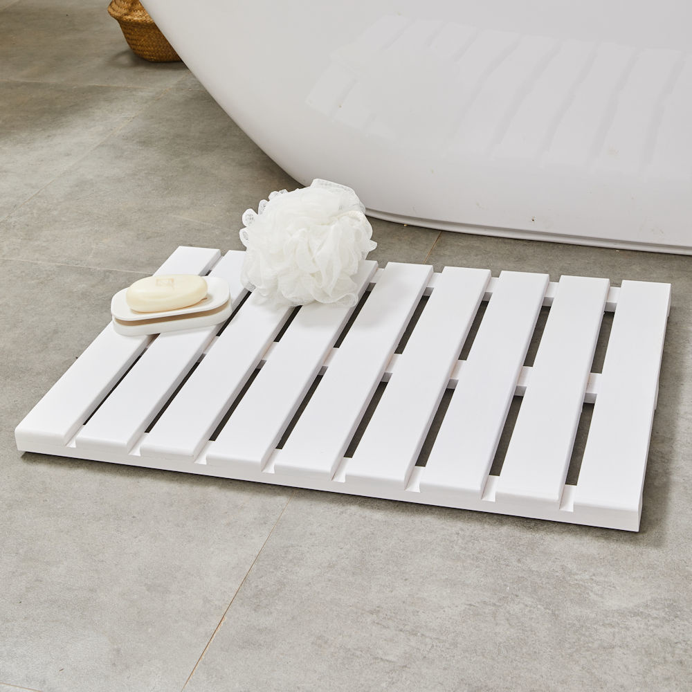 Decopatent Bamboe badmat voor douche of bad - Houten douchemat / badkamermat / saunamat - Kleur: WIT - Decopatent®