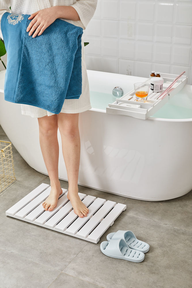 Deze bamboe houten mat is niet alleen geschikt voor gebruik in de badkamer. Je kan hem ook gebruiken bij je jacuzzi, zwembad, sauna of buitendouche. Je kan hem zelfs nog gebruiken in je keuken, op je balkon of in je hal.