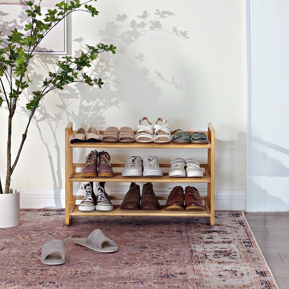 Decopatent Bamboe schoenenrek met 3 etages – Houten opbergrek voor 9 tot 12 paar schoenen – Ruimtebesparend 76 cm – 3 laags schoenenplank - Decopatent