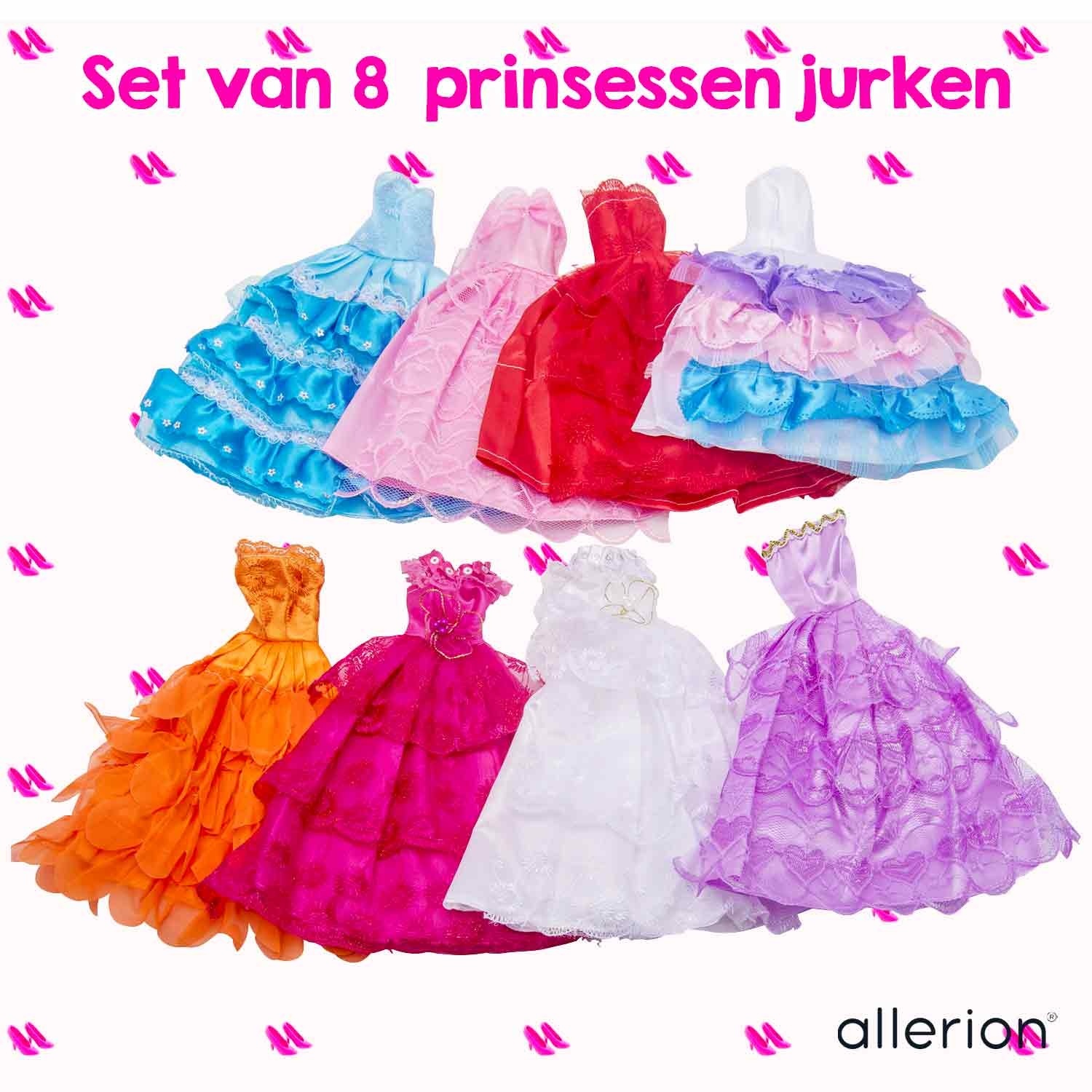 De mooiste prinsessen jurkjes, geschikt voor Barbie poppen, nu in uitgebreide set van 8 stuks! In felle effen kleuren, voor de leukste outfits. Breidt je garderobe uit met deze stoffen jurkjes. Wordt geleverd inclusief opbergzakje, en past door de brievenbus!