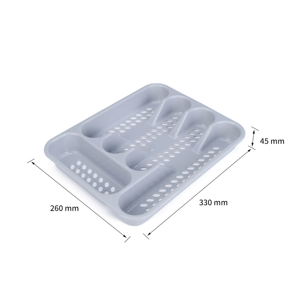 Deze bestek organizer van kunststof heeft 5 vakken. En heeft een afmeting van: 26 x 33 x 4.5 Cm. Hierdoor past de bestekbak in zowel kleine als grote keukenlades. Wanneer nodig kan de organizer onder stromend water eenvoudig schoongemaakt worden. Opmerking: Meet de keukenlade nauwkeurig, zodat de bestekbak erin gelegd kan worden.