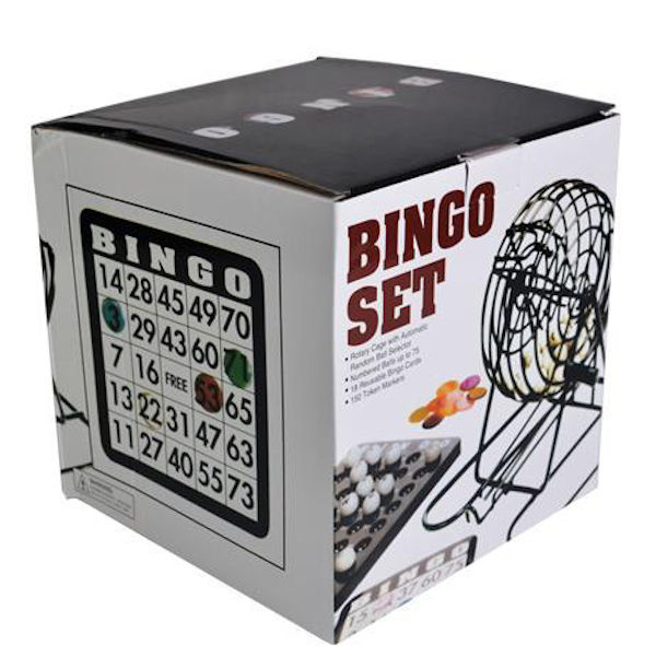 Het populaire gezelschapsspel bingo kan op spelletjes avonden niet missen. Het lotto spel is geweldig om te spelen. De zwartgelakte metalen bingomolen is uiterst stabiel en door zijn design er net uitziet als de echte bingomolen. Inclusief 75x bingoballen, bingo chips, spelbord en 18 stuks bingokaarten maken deze set compleet.