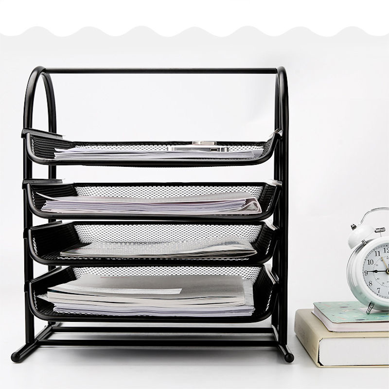 Los liggende papieren, tijdschriften en andere documenten. Maak daar een einde aan met deze brievenbak. Berg ze vanaf nu op in deze documenthouder met 4 vakken van mesh metaal.