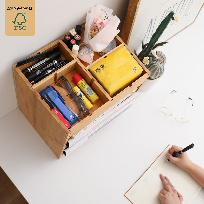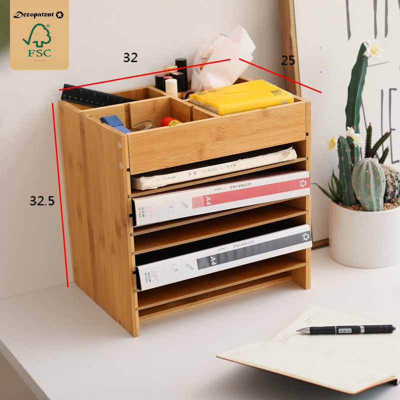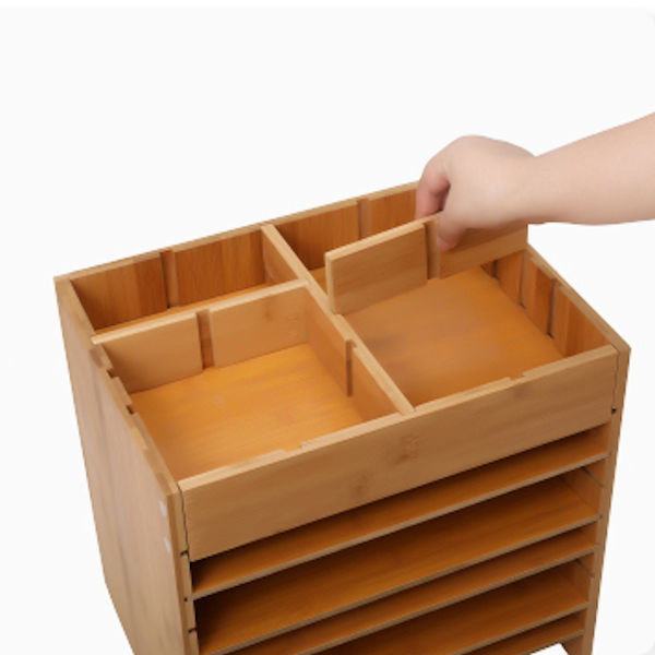 Decopatent Brievenbakje bamboe - brieven organizer - sorteerbak bureau brievenvak - documentenhouder met verstelbare vakken en extra boven vakken voor kantoor benodigdheden - Decopatent®