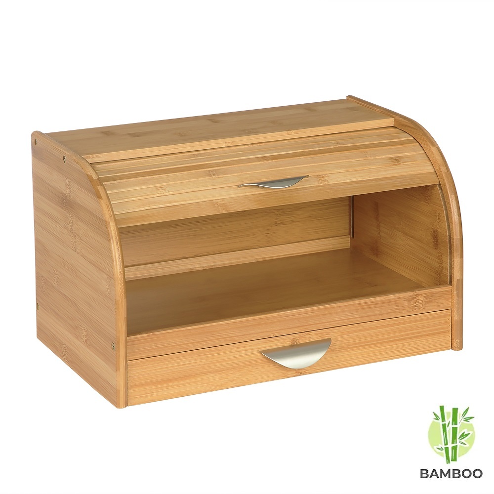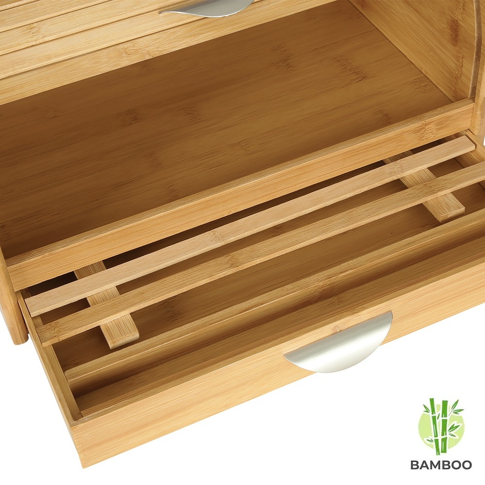 Luxe broodtrommel van bamboe hout. Met handige schuifdeksel en met geïntegreerde snijplank waarop je direct brood kan snijden!