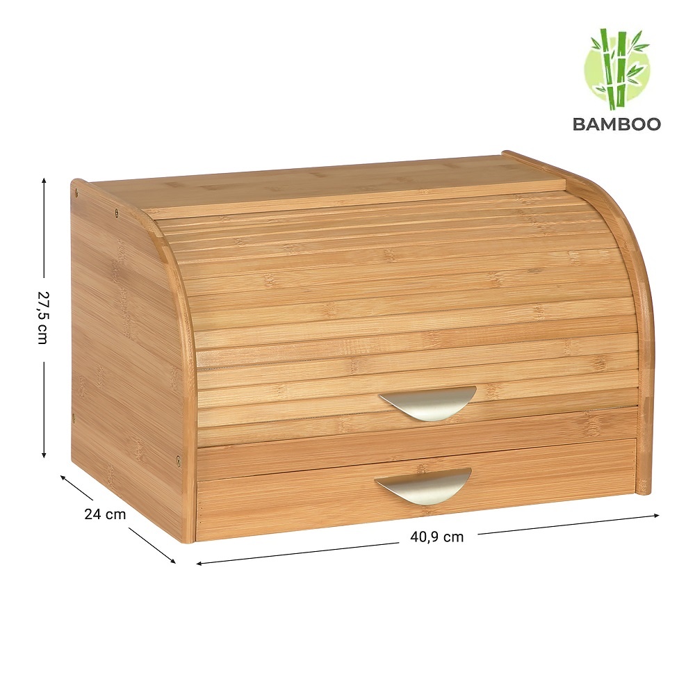 De broodtrommel is gemaakt van een natuurlijk materiaal, namelijk bamboe hout. Bamboe heeft een aantal goede eigenschappen. Zo is het niet alleen stevig, het ziet er ook nog eens mooi natuurlijk uit. Daarom past het in elke keuken en ga je lang plezier hebben van deze broodtrommel.