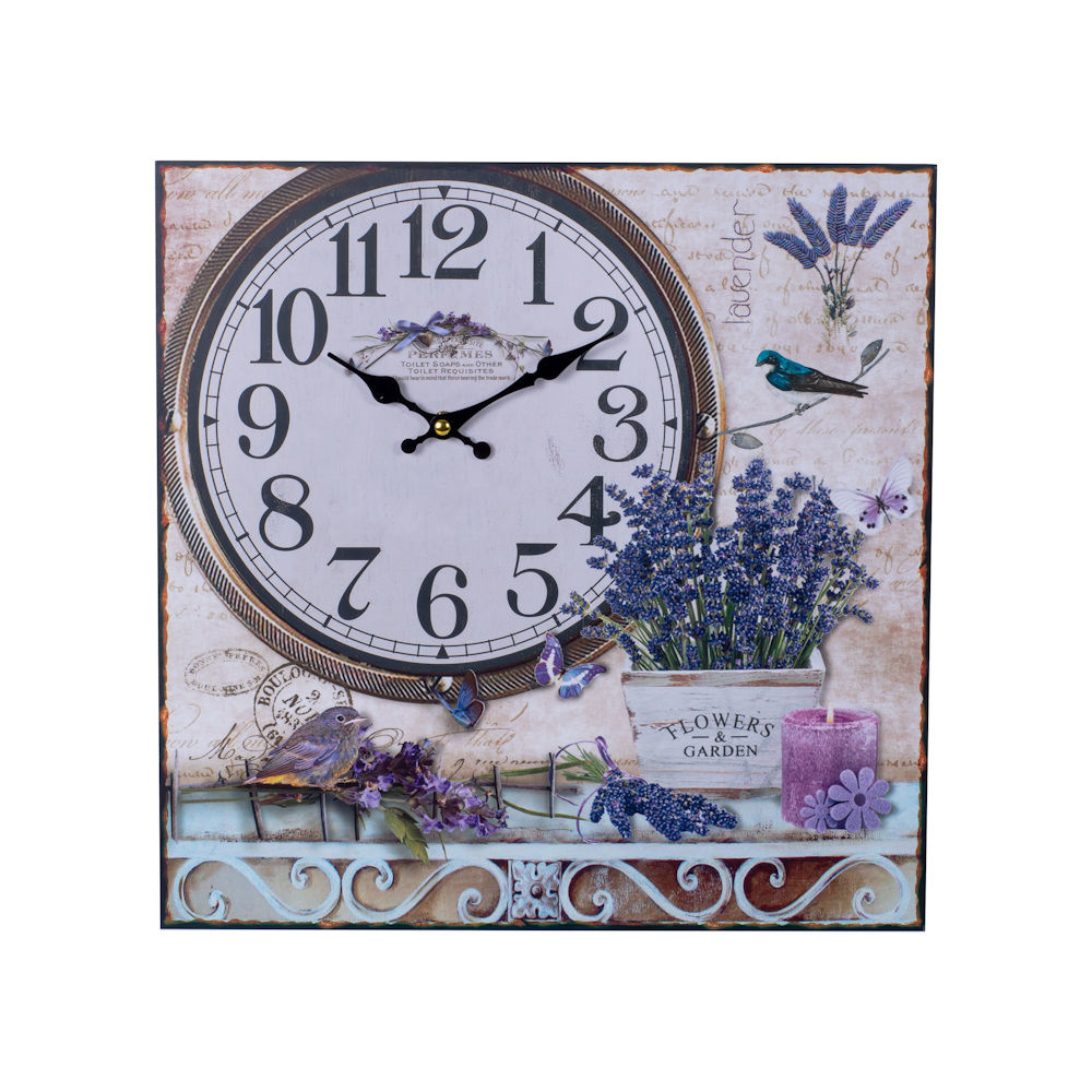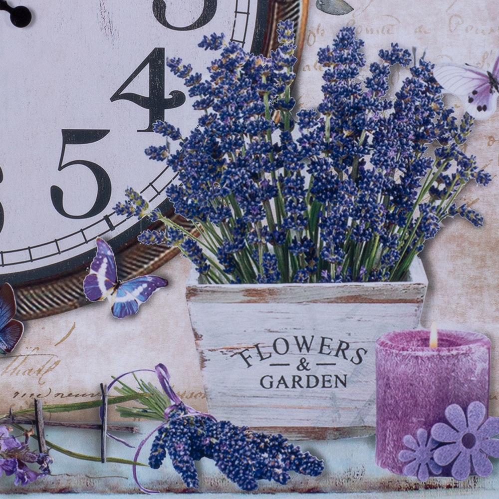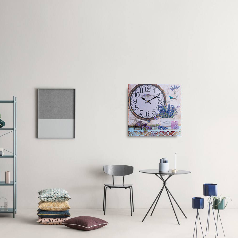 Decopatent Canvas Schilderij Wandklok LAVENDEL FLOWERS & GARDEN 38 Cm met Klok - Wand Klok Landelijk / Brocante - Canvasklok - Canvas Wandklokken met Klok - Keukenklok - Muurklok Wand Klok - Afm. 38 x 38 Cm - Decopatent®