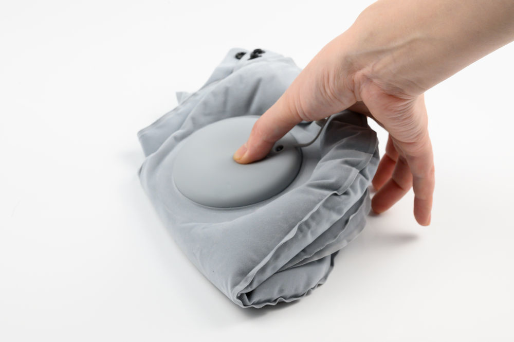 Dit reiskussen is voorzien van een handige knop, om uw reiskussen in de juiste hardheid in te stelllen, en om het reiskussen weer leeg te laten lopen.