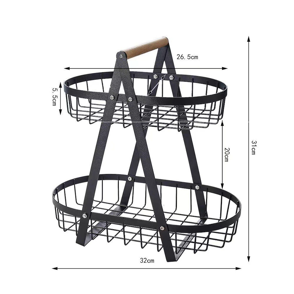 Met afmetingen van 32 x 18 x 31 cm biedt de etagere voldoende ruimte voor het plaatsen van verschillende soorten fruit, maar kan ook worden gebruikt voor het presenteren van kleine snacks, sieraden of andere decoratieve items. De 2 lagen maken het mogelijk om verschillende producten overzichtelijk te rangschikken, wat de etagere niet alleen praktisch, maar ook ruimtebesparend maakt.
