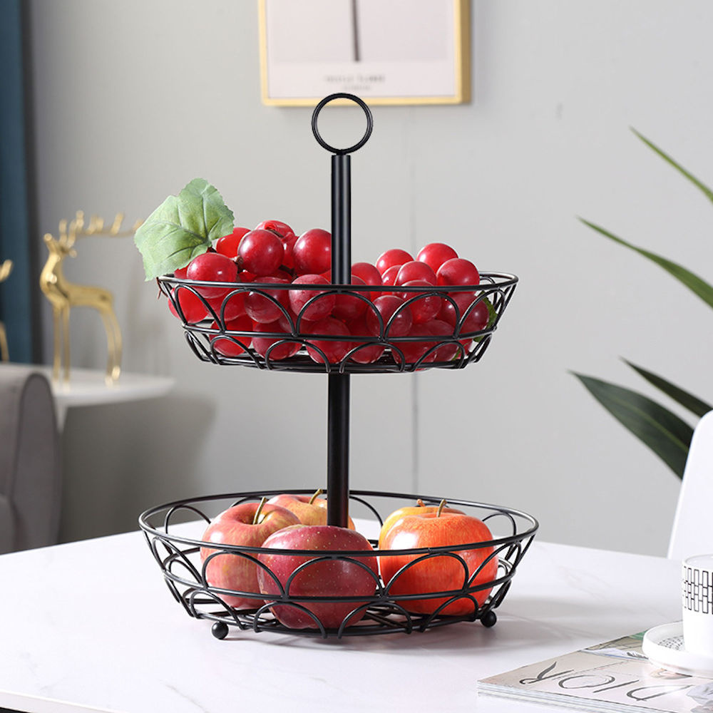 Decopatent Decopatent - 2-laags Ronde Fruit etagere - Fruitschaal Rond - Fruitmand - Ø29CM - Metaal - Modern en Stijlvol - Afmetingen: 29 x 29 x 42 Cm