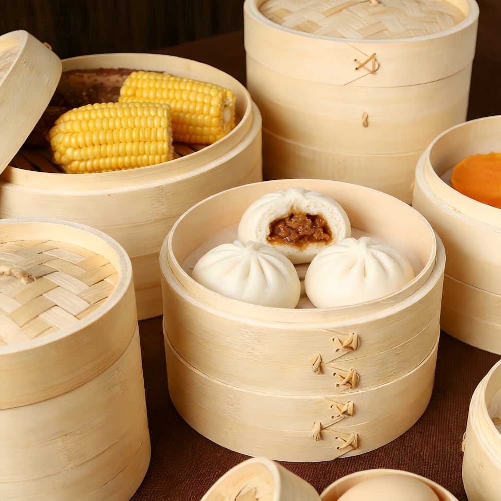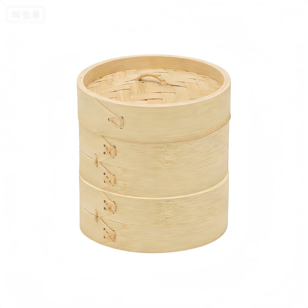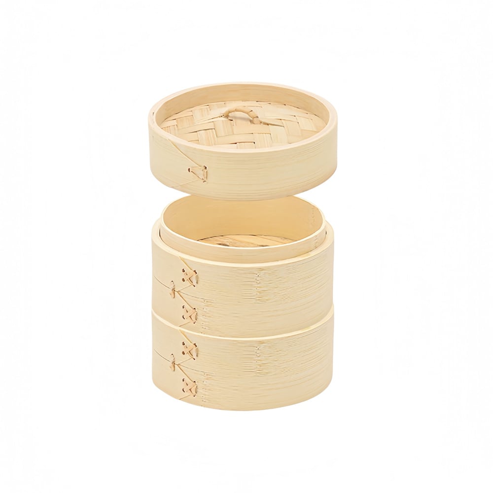 - Rond Bamboe stoommandje, voorzien van 2 stoommandjes + deksel.