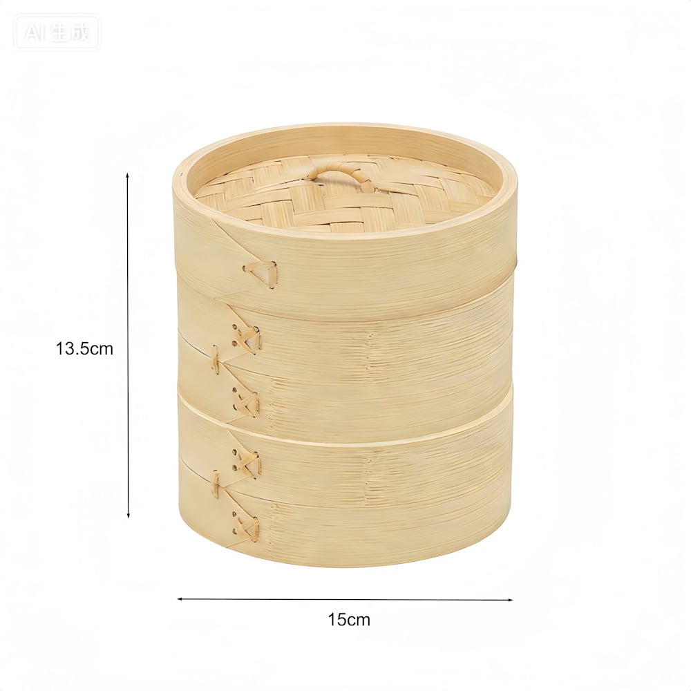 Decopatent - 3 Delig Stoommandje met deksel - Ø15 Cm - Bamboe Hout - Rijst Stoommanden - Stomer - Steamer Cooker - Dim Sum Stoomschaal
