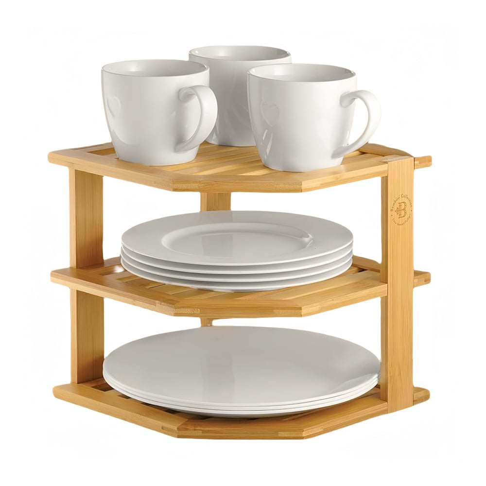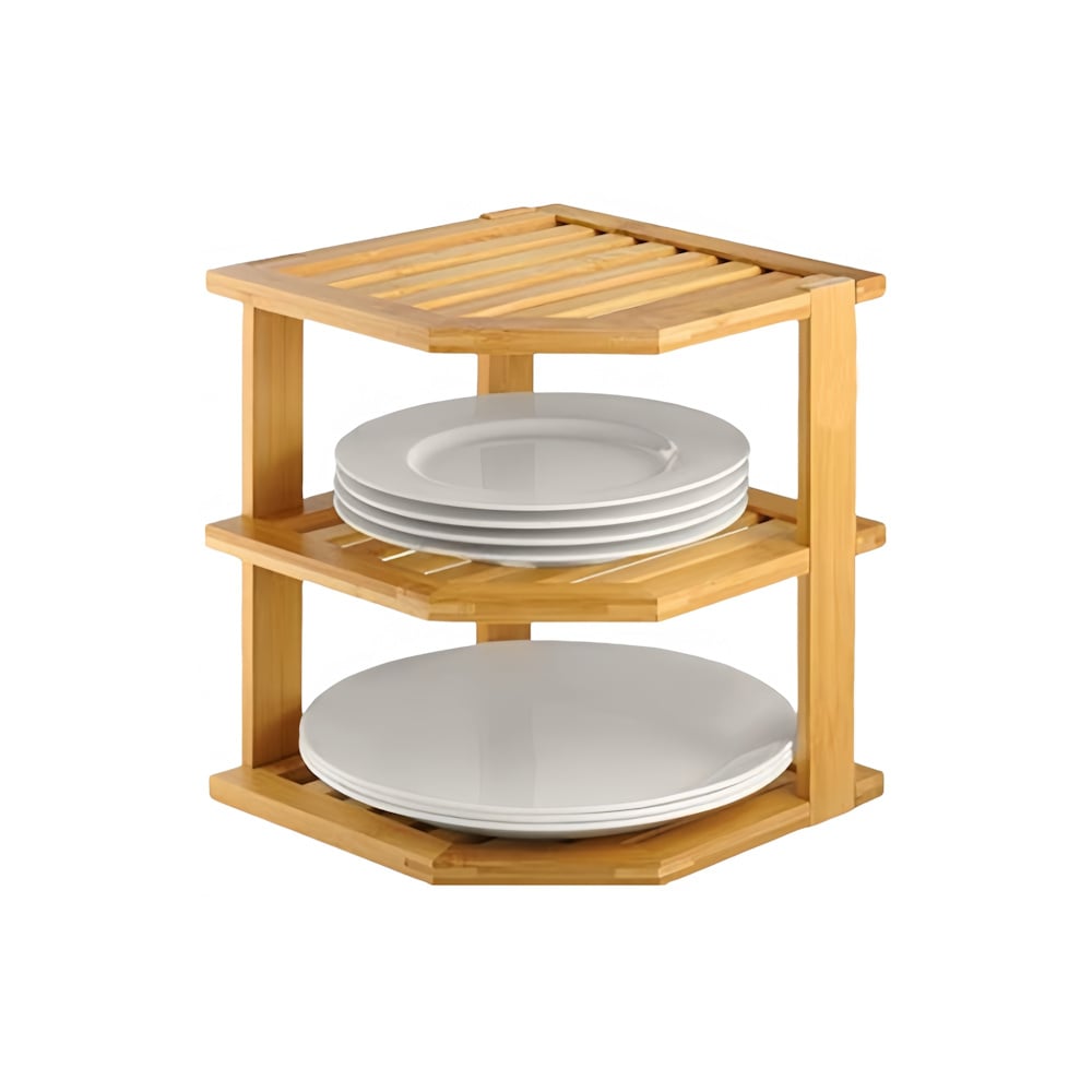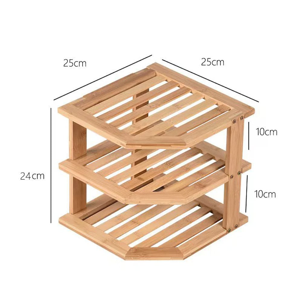 Dit handige opbergrek voor plaatsing in de hoek is voorzien van 3 lagen is gemaakt van Bamboe hout. En is speciaal gemaakt voor gebruik in de keuken.