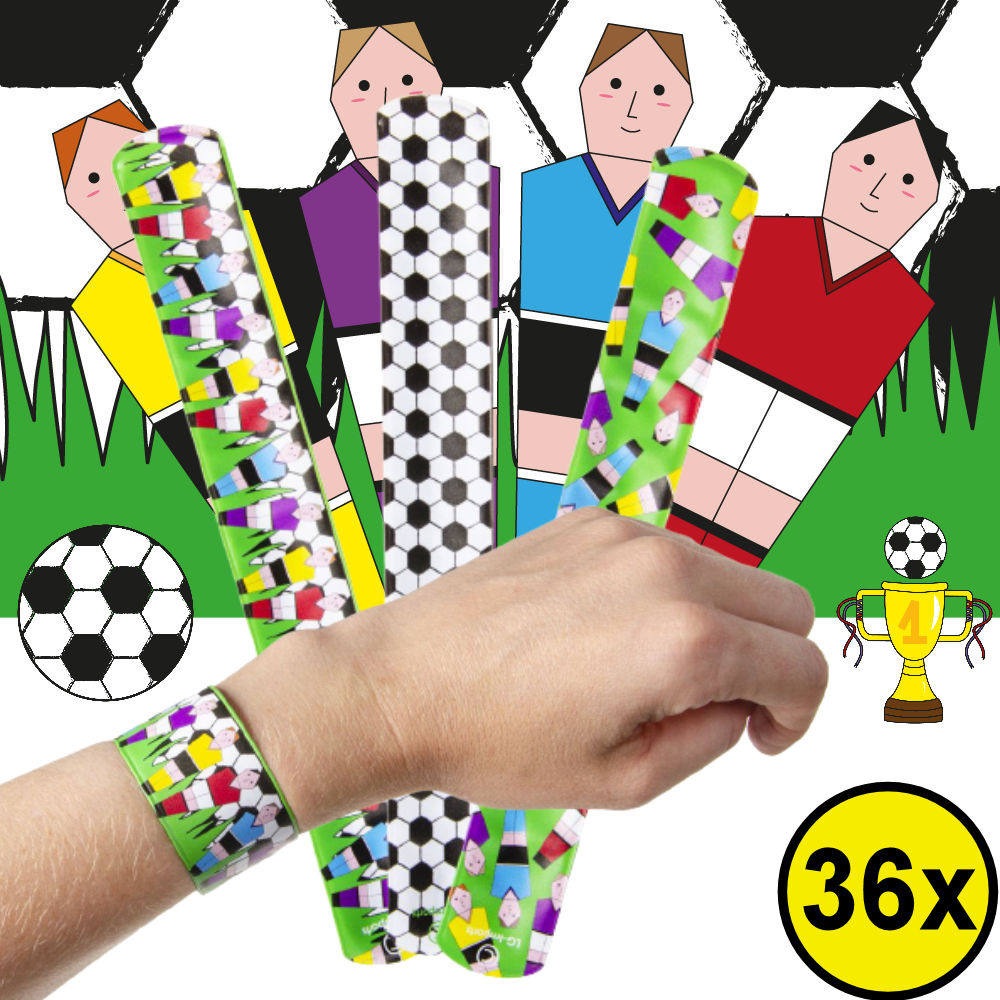 Decopatent 36 STUKS Voetballers Klaparmbandjes - Uitdeelcadeaus - Klap Armbanden - Traktatie Uitdeelcadeautjes voor kinderen - Grabbelton - School - Kinderfeestje - Klein Speelgoed Trakteren - Grabbelton Traktaties Cadeautjes