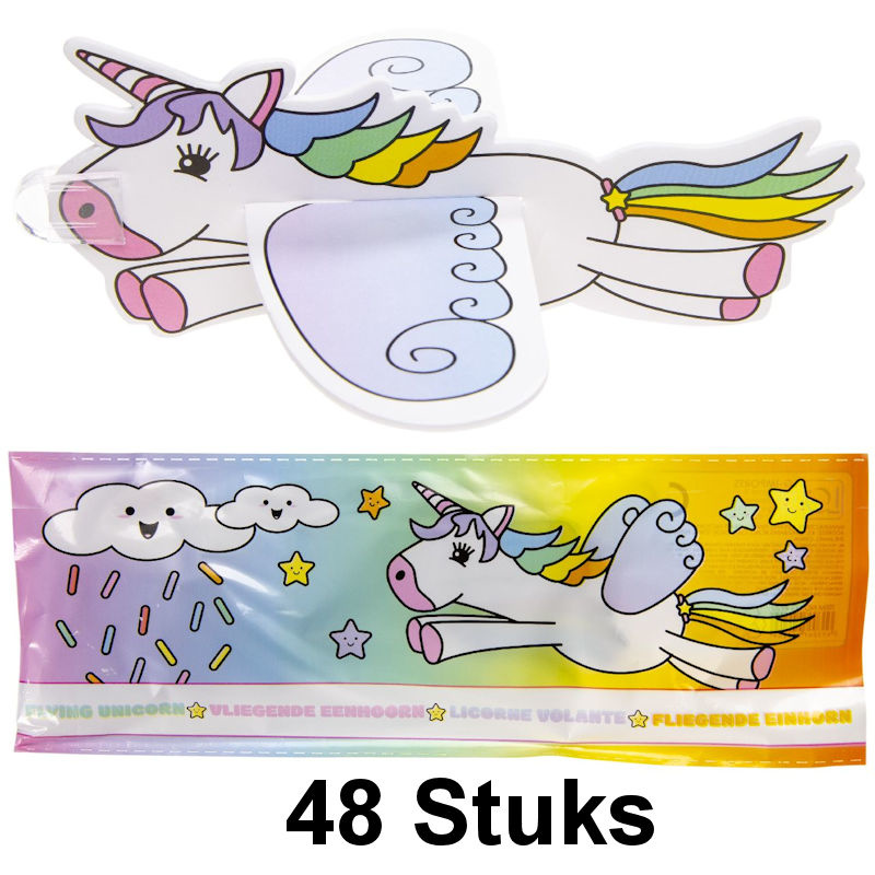 48 STUKS Decopatent Uitdeelcadeaus 48 STUKS Foam Unicorn / Eenhoorn Vliegtuigen - Traktatie Uitdeelcadeautjes voor kinderen - Speelgoed Traktaties