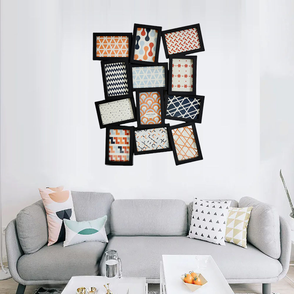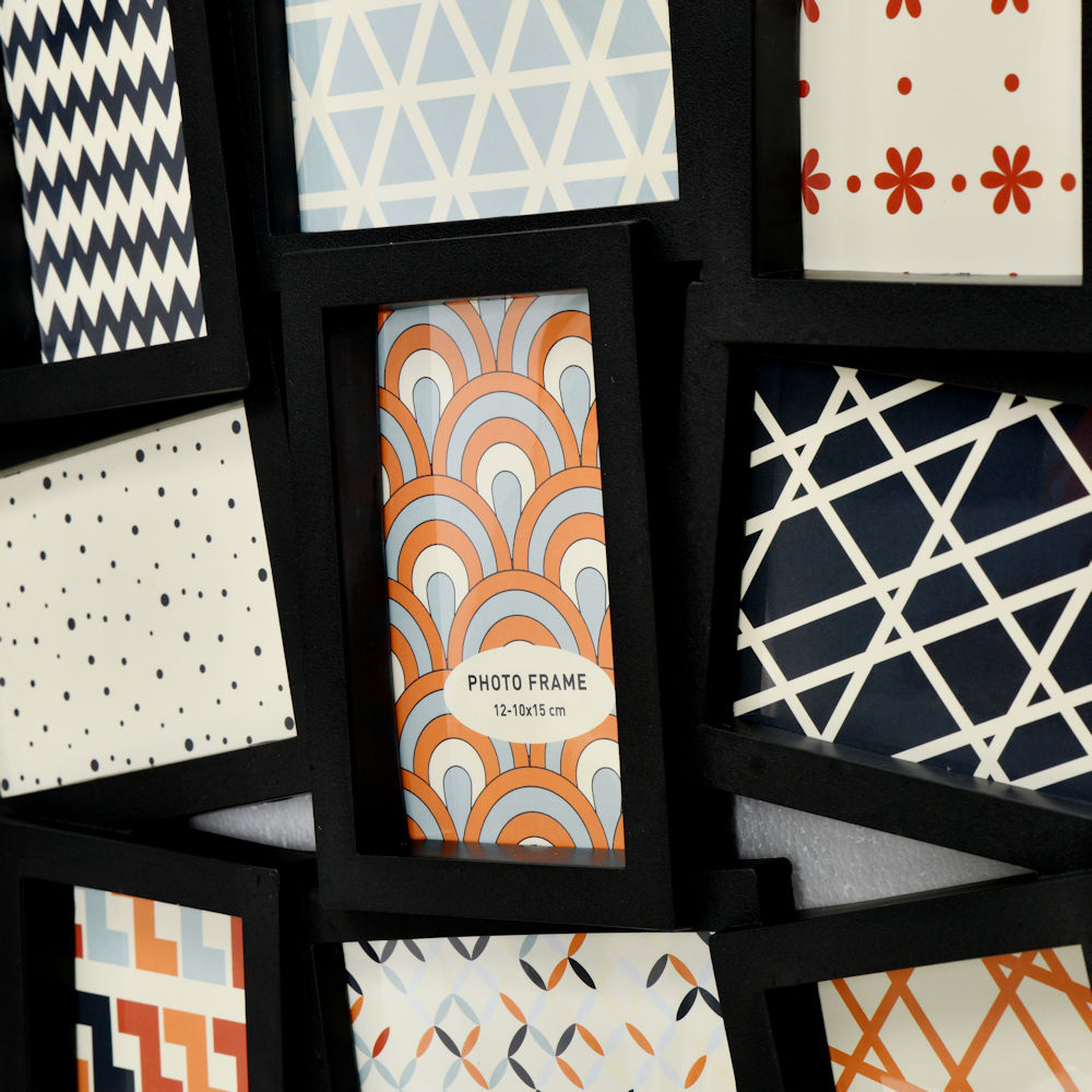 Alle foto‘s van die geweldige momenten welke je met je familie, vrienden of op vakantie hebt meegemaakt slingeren nu nog vaak rond in je la of op de harde schijf van je computer of telefoon? Deel met deze grote fotolijst deze prachtige foto's met de nieuwsgierige kijkers! Creëer zelf een persoonlijke fotocollage met behulp van deze uiterst decoratieve fotolijst. Hij biedt ruimte voor in totaal 12 foto‘s. Dankzij de ophang haken aan de achterkant kan je zelf bepalen of hij verticaal of horizontaal wordt opgehangen.