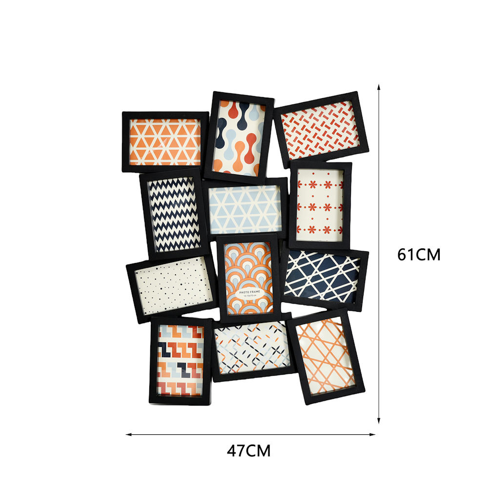 Decopatent Decopatent - Fotolijst Collage voor 12 Foto's van (10x15 & 15x10 Cm) - Fotolijsten - Fotolijstje met 12 fotokaders - 47 x 61 Cm - Zwart