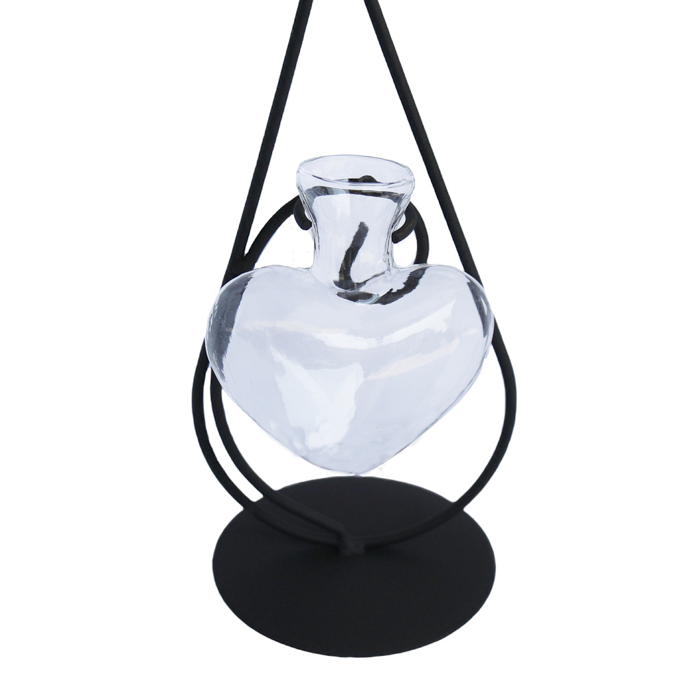 Decopatent IJzeren staande poes met vaasje in hartvorm. Glazen vaas om bloemetjes, stekjes, droogbloemen of luchtplantjes in te zetten