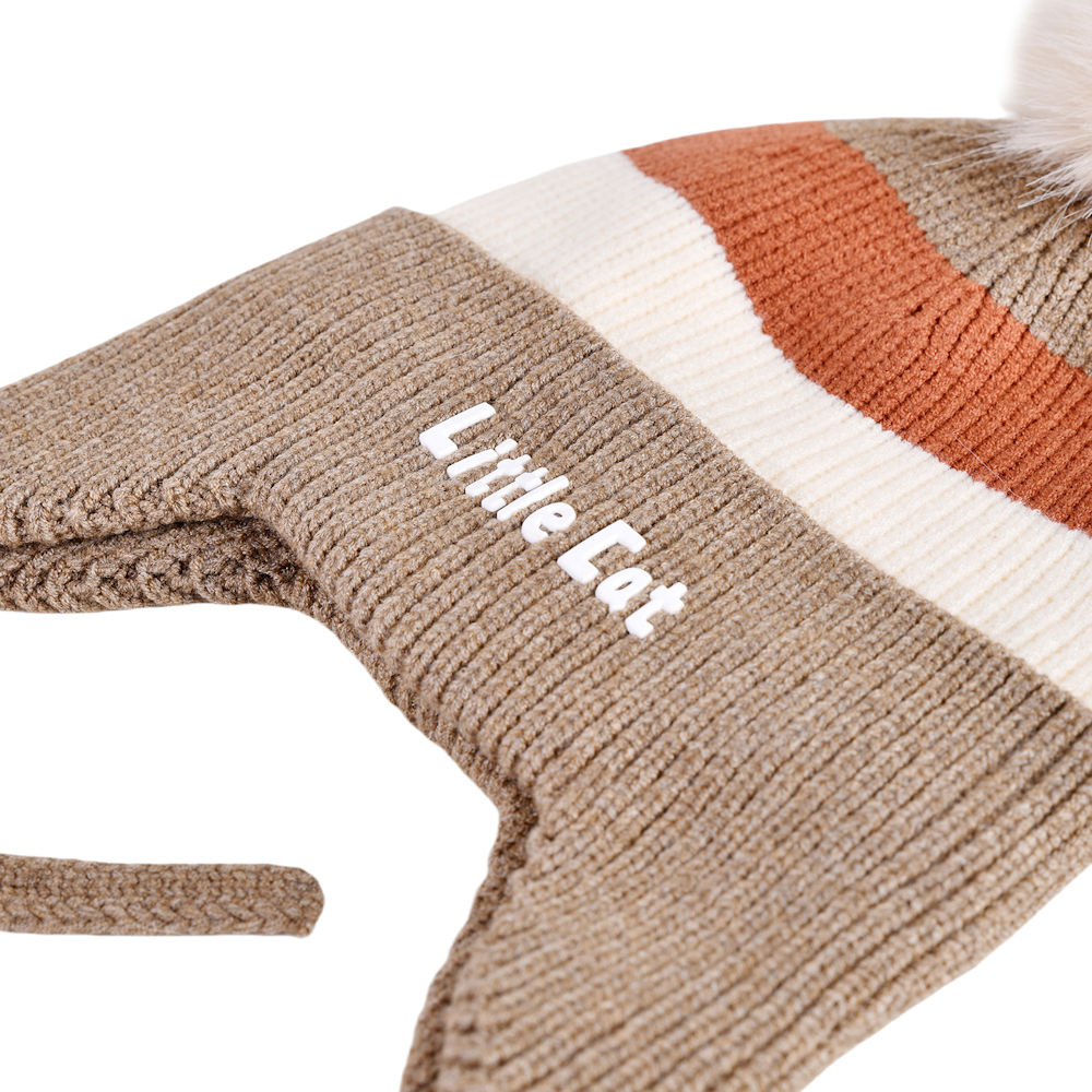 Decopatent Decopatent LITTLE CAT - Muts Kind - Kinder muts met pompon - 6 Maanden t/m 6 jaar - Maat 48/52 - Kindermutsen Jongens & Meisjes - Gebreide Muts met Binnenvoering - Muts Baby / Peuter / Kleuter - Wintermuts - Kleur: Bruin met gekleurde Strepen