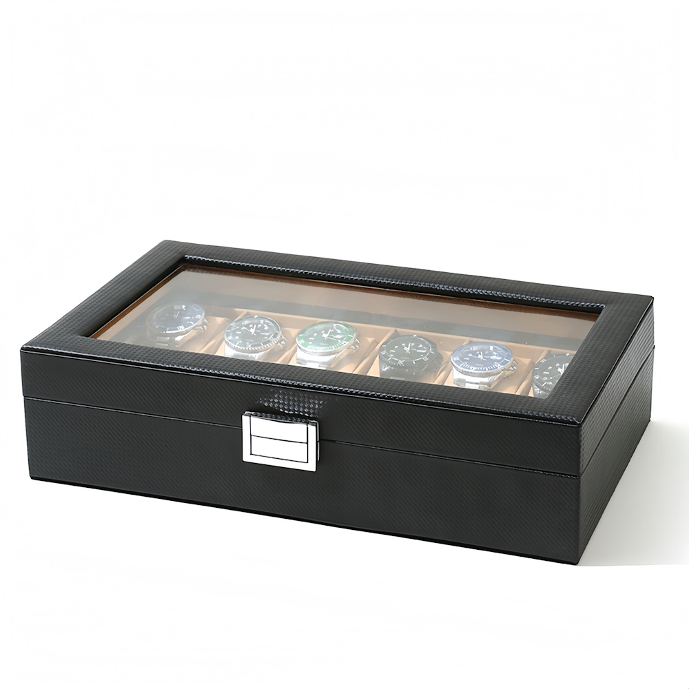 Het transparante glazen venster aan de bovenzijde maakt het eenvoudig om door je collectie te bladeren. Zo zie je in één oogopslag welk horloge het beste bij je outfit past terwijl je je aankleedt. De stevige scharnieren zorgen ervoor dat de doos stabiel open blijft staan.