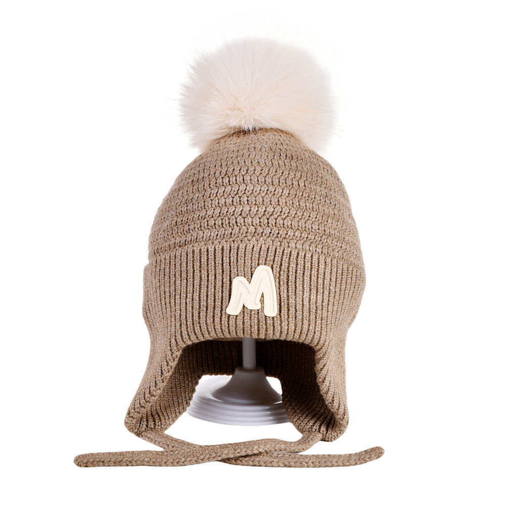 Decopatent Decopatent - Muts Kind - Kinder muts met pompon - M Embleem - 6 Maanden t/m 6 jaar - Maat 48/52 - Kindermutsen Jongens & Meisjes - Gebreide Muts met Binnenvoering - Muts Baby / Peuter / Kleuter - Wintermuts - Kleur: Licht Bruin