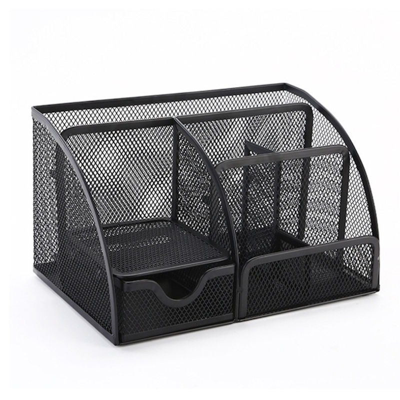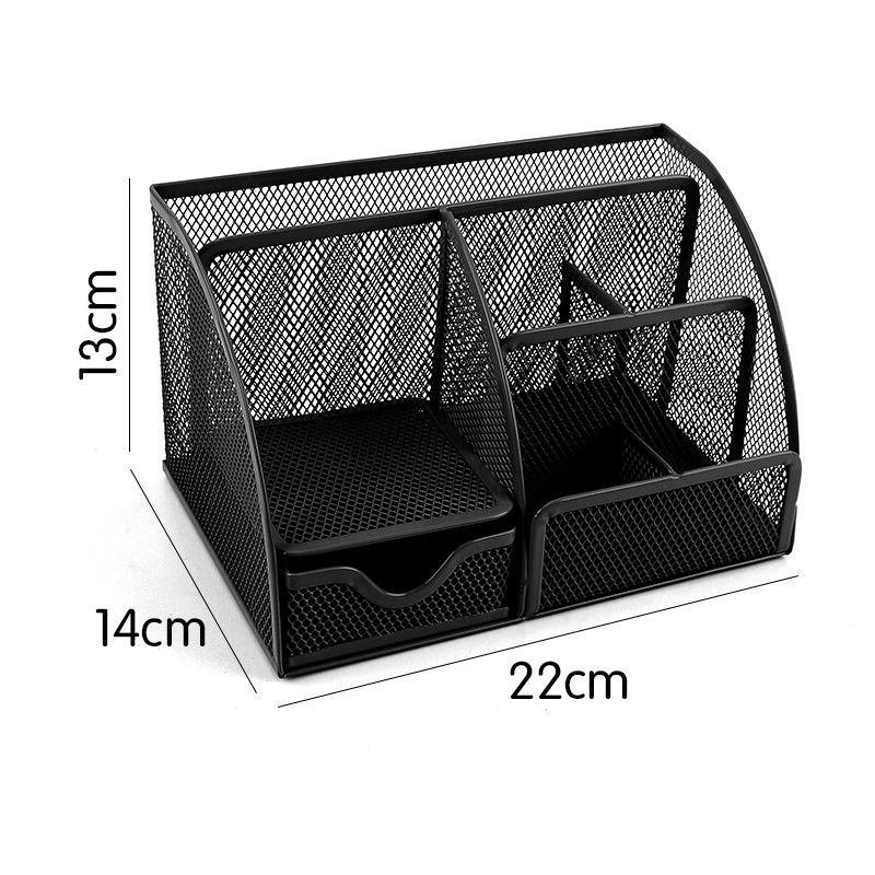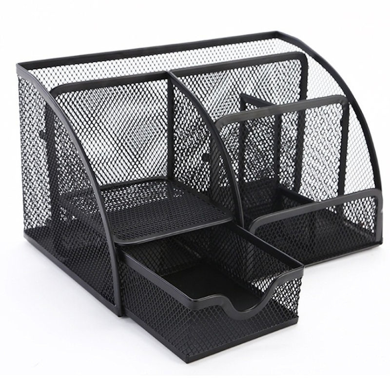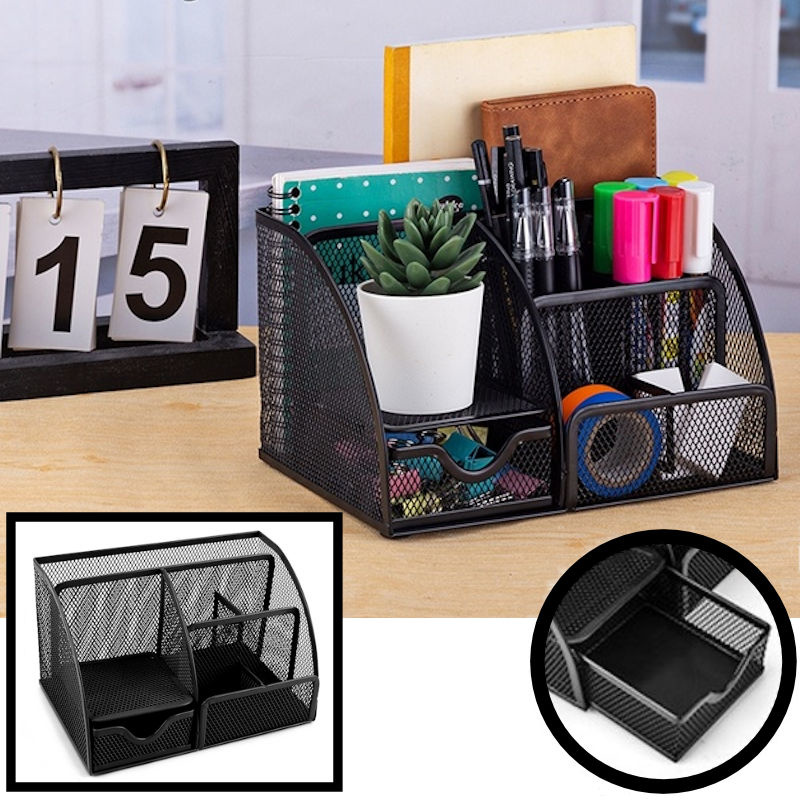 Decopatent Decopatent - Pennenbak 6 vakken en Schuiflade - Pennenhouder - Desk - Bureau organizer - Mesh - Metaal - Pennenbakjes - Zwart