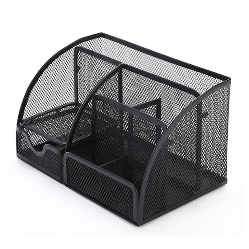 Pennen, scharen en potloden. Als je ze nodig hebt, kan je ze niet vinden. Maak daar een einde aan met deze handige pennenhouder. Berg ze vanaf nu eenvoudig op in dit pennenbakje van mesh metaal. Het pennen bakje biedt voldoende ruimte voor je pennen, potloden en scharen en dan blijft er nog voldoende ruimte over voor een klein notitieblokje en paperclips !.