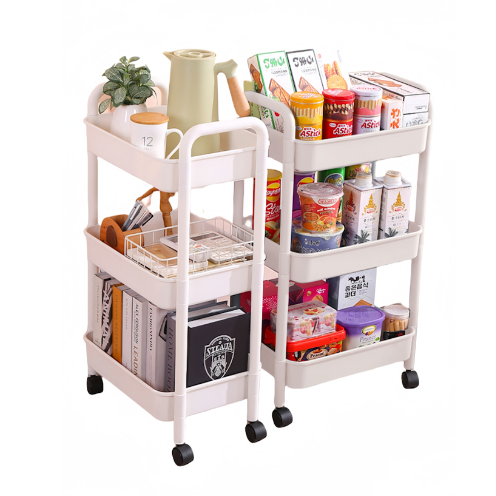 Te gebruiken als keukentrolly in uw keuken, om bijvoorbeeld uw extra voorraad, specerijen etc in op te bergen. Ook zeer geschikt als badkamerrek om uw shampoo, handdoeken, toilet spullen etc in op te bergen. Het rekje is erg praktisch doordat er 3 niveaus voor opslag mogelijk zijn.