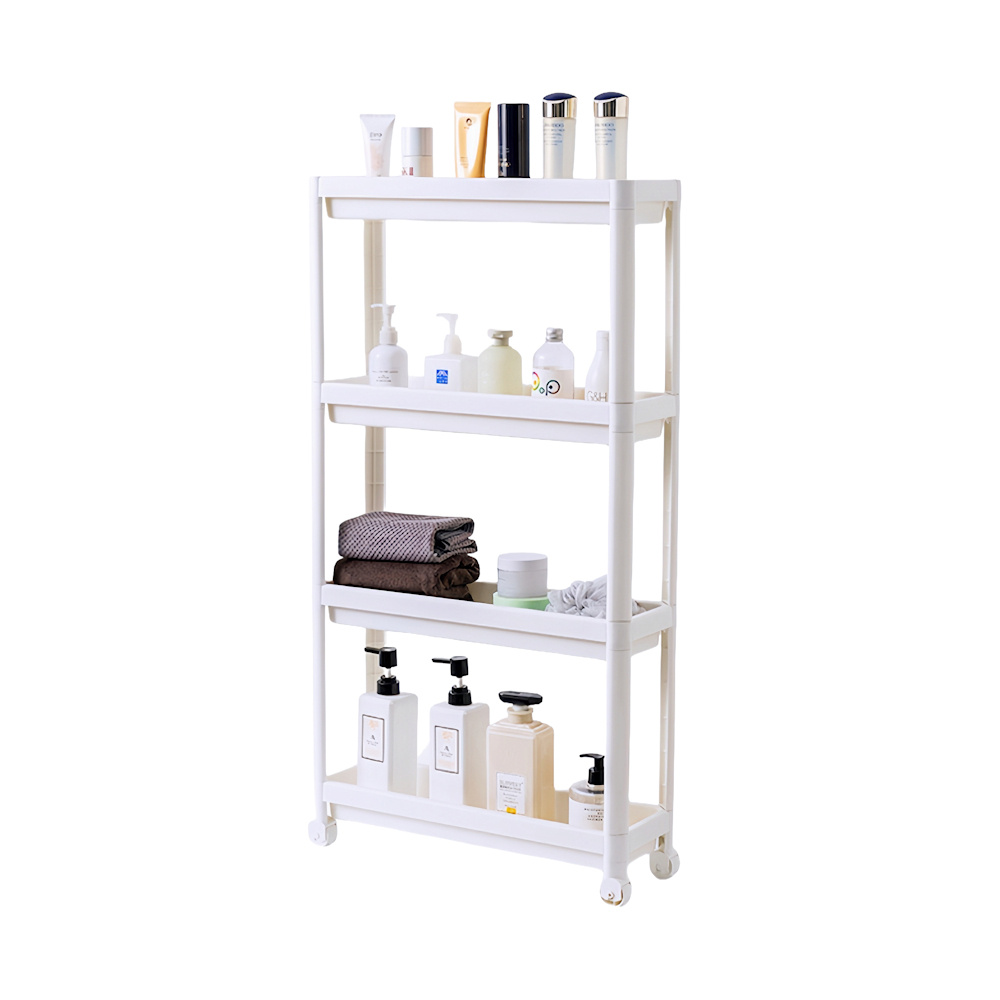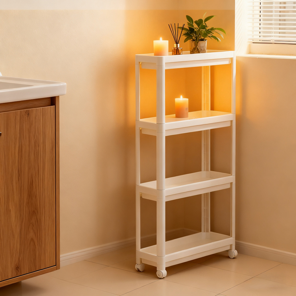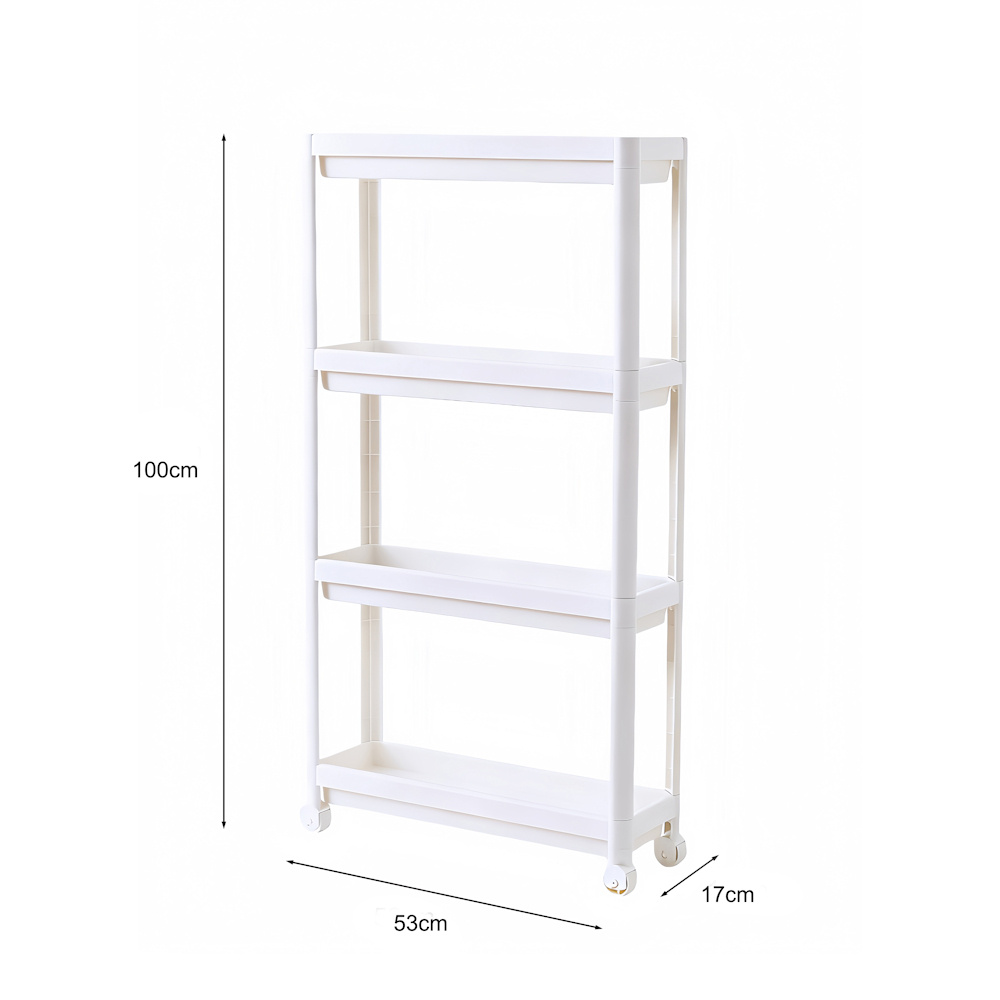 Dit mooie smalle opbergrek met 4 legplanken gemaakt van hoogwaardig kunststof is zeer geschikt, om de kleinste hoekjes te vullen en om snel extra opslagruimte te creëren. Dit nisrek kan bijvoorbeeld in de keuken, badkamer, woonkamer, eetkamer, berging gebruikt worden.