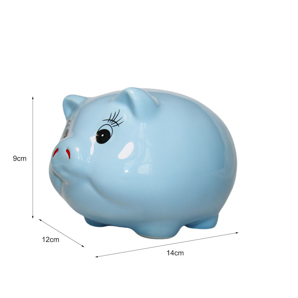 Decopatent - Spaarvarken Spaarpot - Keramiek - Afm 14 x 12 x 9 cm - Spaarpot varken voor volwassenen en kleine kinderen - Cadeau - Kleur: Blauw