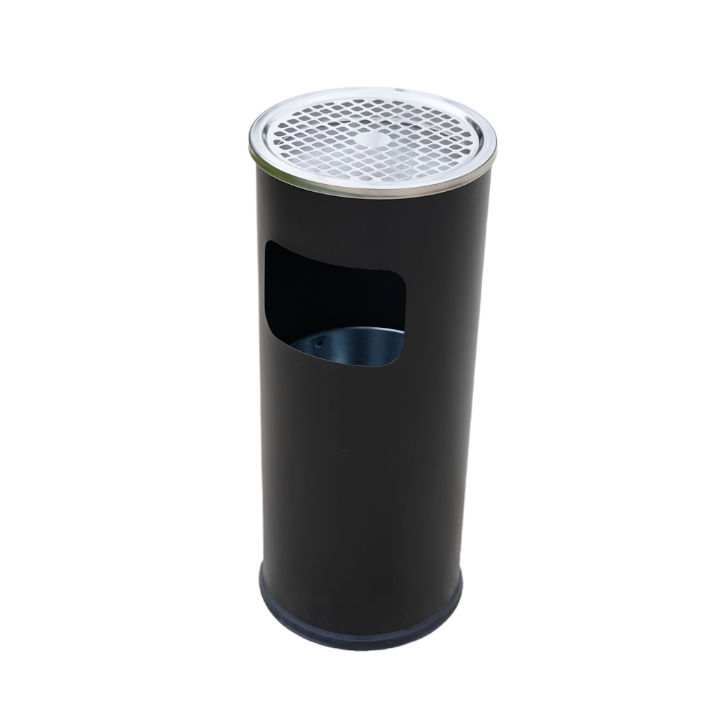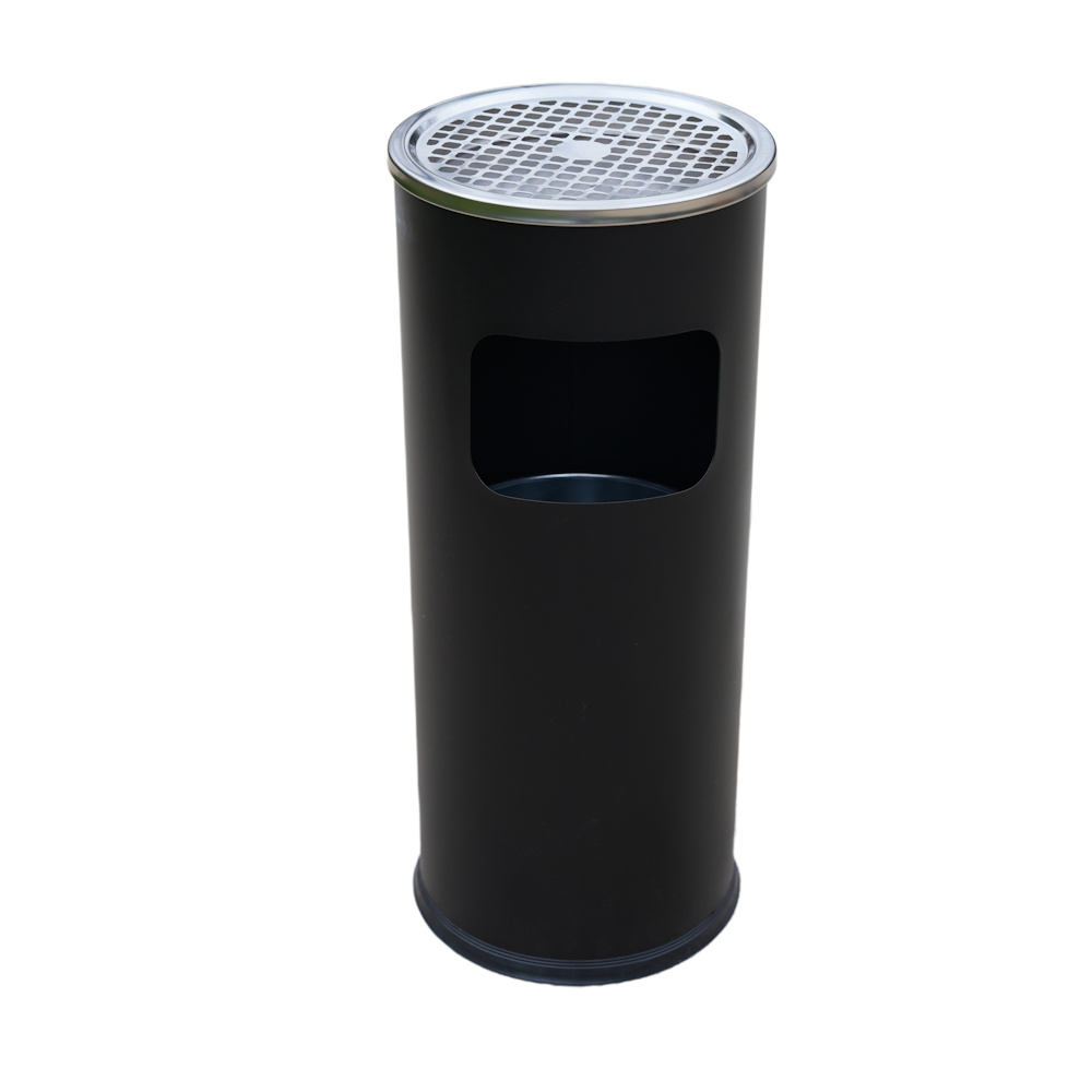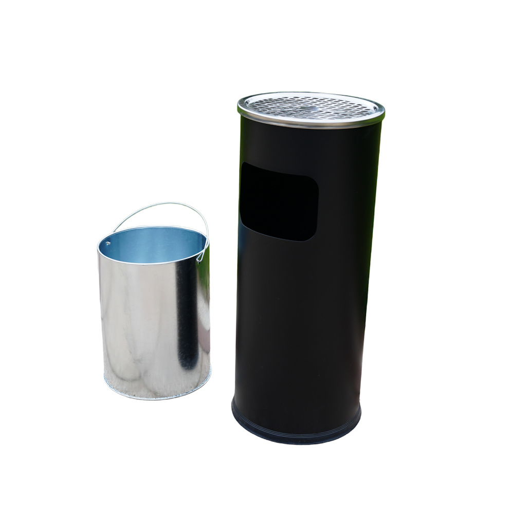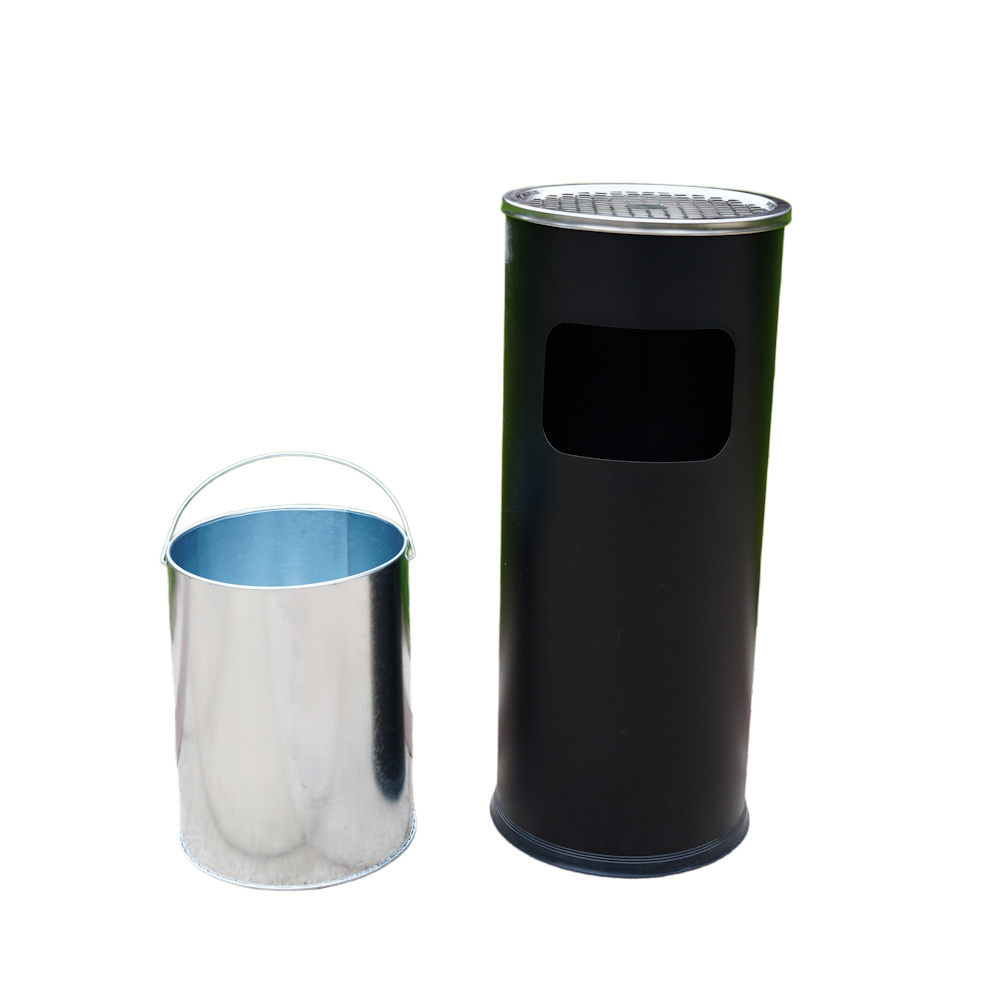 Staande Ronde Asbak met RVS Afvalbak. Geen uitgedrukte sigaretten meer op straat of in de tuin met deze moderne staande vuilnisbak met asbak. Deze vuilnisbak heeft een stijlvol zwart design en staat perfect in uw tuin, op straat, bij een rookzone of bij een ingang van een bedrijf. Deze vuilnisbak biedt niet alleen een plek voor afval, maar dankzij de handige asbak kun je er ook al je sigarettenpeuken in kwijt.
