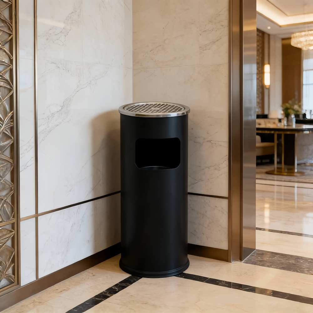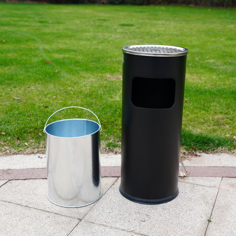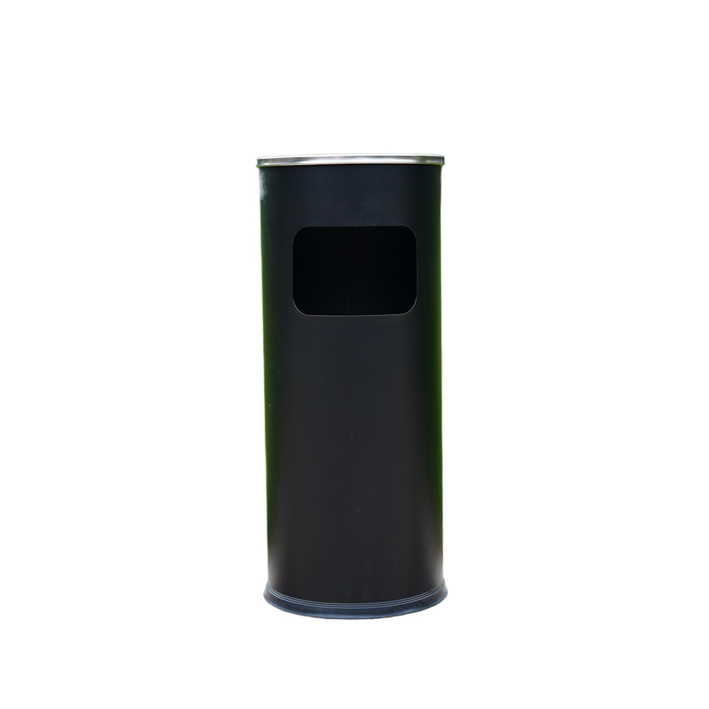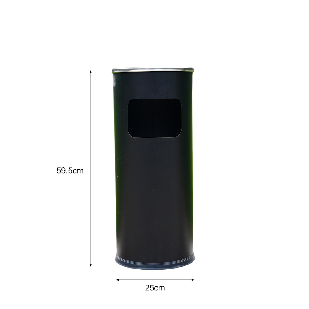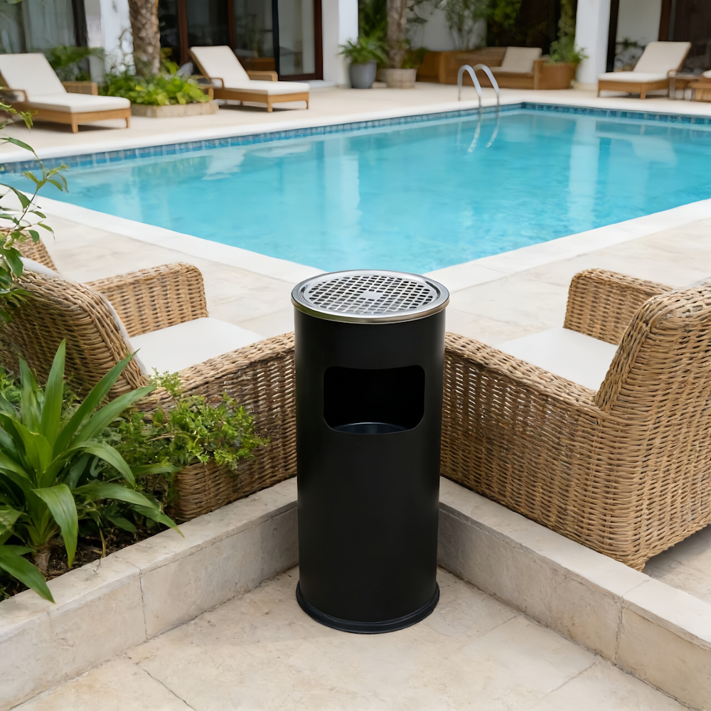 Staande Ronde Asbak met RVS Afvalbak. Geen uitgedrukte sigaretten meer op straat of in de tuin met deze moderne staande vuilnisbak met asbak. Deze vuilnisbak heeft een stijlvol zwart design en staat perfect in uw tuin, op straat, bij een rookzone of bij een ingang van een bedrijf. Deze vuilnisbak biedt niet alleen een plek voor afval, maar dankzij de handige asbak kun je er ook al je sigarettenpeuken in kwijt.