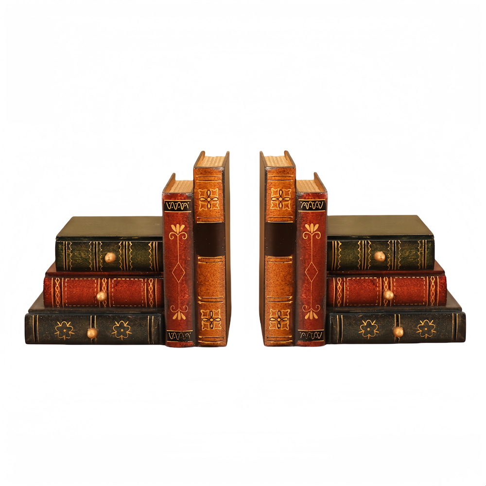 Decopatent Vintage Houten Boekensteunen met 6 Lades - 2-Delige Set - 16x9x15 cm