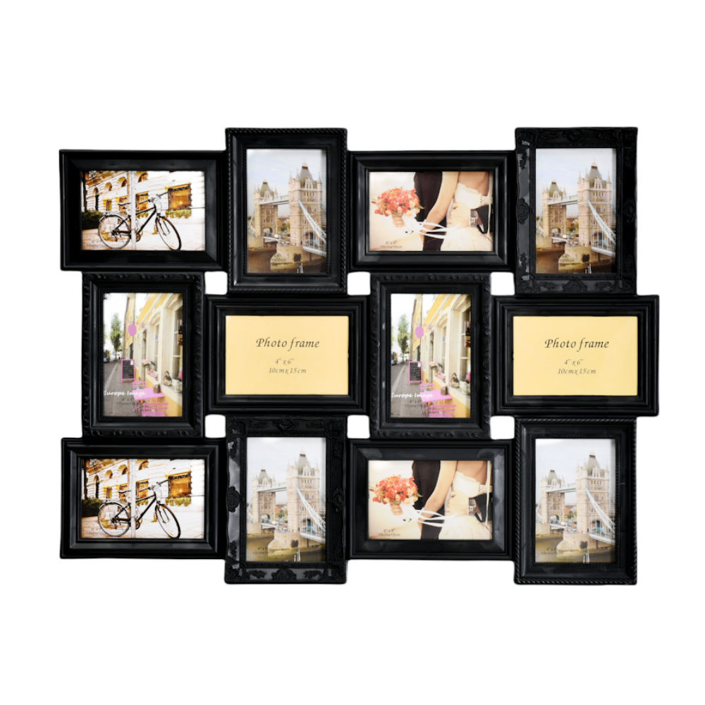 Alle foto‘s van die geweldige momenten welke je met je familie, vrienden of op vakantie hebt meegemaakt slingeren nu nog vaak rond in je la of op de harde schijf van je computer of telefoon? Deel met deze grote fotolijst deze prachtige foto's met de nieuwsgierige kijkers! Creëer zelf een persoonlijke fotocollage met behulp van deze uiterst decoratieve fotolijst. Hij biedt ruimte voor in totaal 12 foto‘s. Dankzij de ophang haken aan de achterkant kan je zelf bepalen of hij verticaal of horizontaal wordt opgehangen.