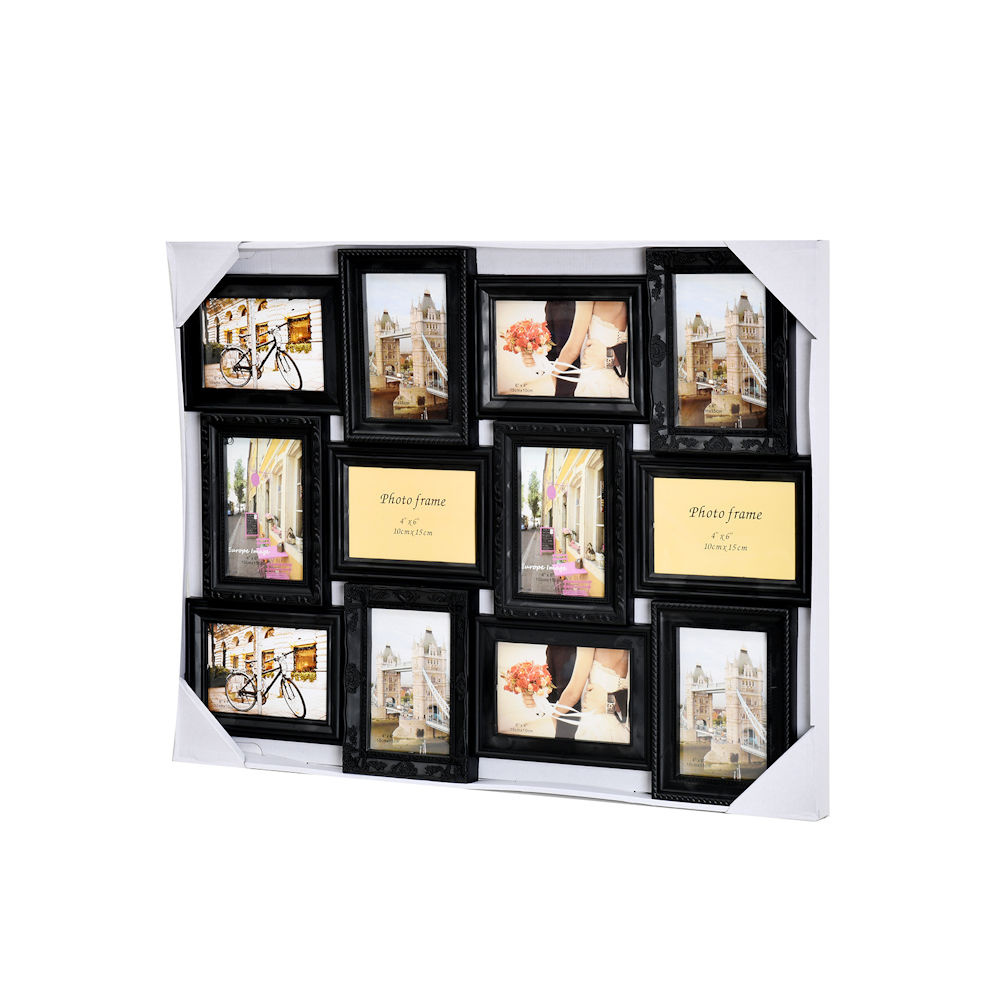 Foto Collagelijst voor 12 foto's van verschillende foto formaten: 10 x 15 & 15 x 10 Cm. Voor je mooiste foto's! Met stevige achterkant voorzien van wand ophanghaak en gemaakt van kunststof. Dankzij de ophang haken aan de achterkant kan je zelf bepalen of hij verticaal of horizontaal wordt opgehangen.
