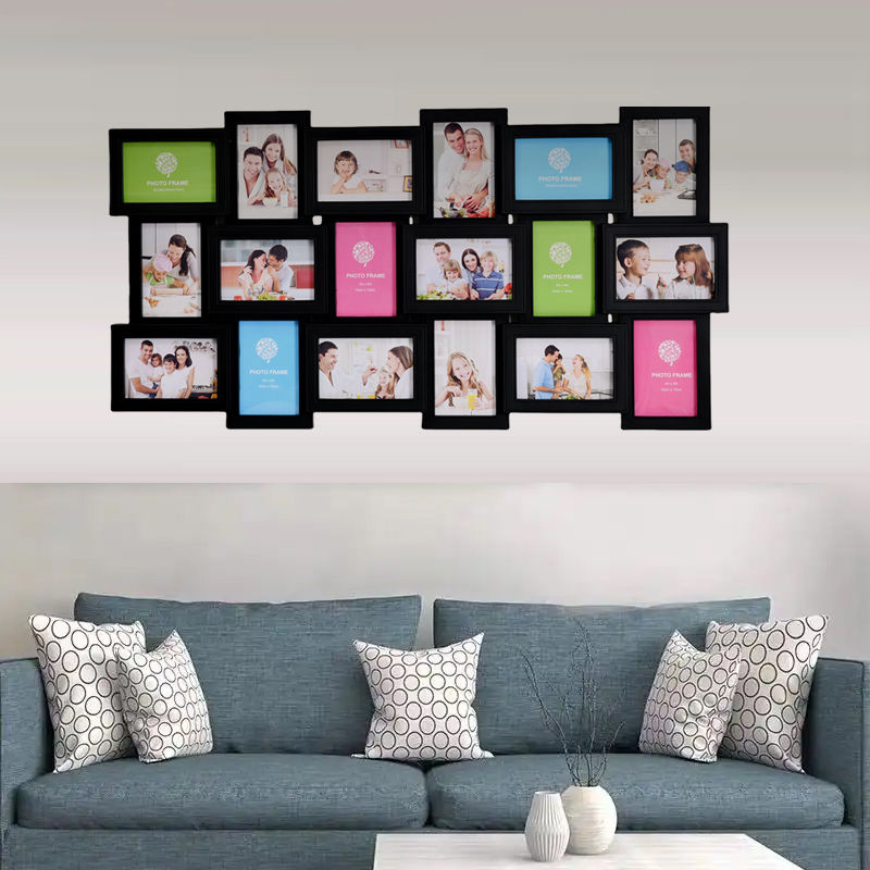 Alle foto‘s van die geweldige momenten welke je met je familie, vrienden of op vakantie hebt meegemaakt slingeren nu nog vaak rond in je la of op de harde schijf van je computer of telefoon? Deel met deze grote fotolijst deze prachtige foto's met de nieuwsgierige kijkers! Creëer zelf een persoonlijke fotocollage met behulp van deze uiterst decoratieve fotolijst. Hij biedt ruimte voor in totaal 18 foto‘s. Dankzij de ophang haken aan de achterkant kan je zelf bepalen of hij verticaal of horizontaal wordt opgehangen.